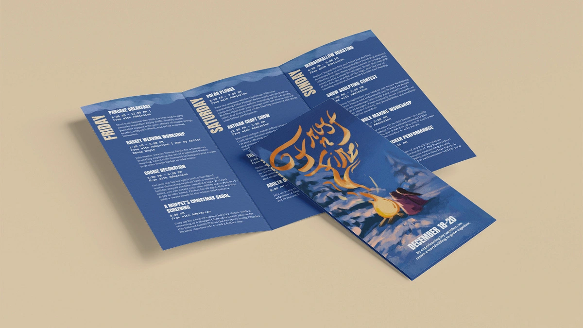 Going into this project I already had a fairly good idea on how I wanted to tackle the premise. The concept around the event was that winter is always a time when we gather for warmth, which contrasts against the cold nature of the season. So, I wanted to portray this with a warm and cool colour palette. However, that still leaves room for a lot of possibilities, so I used a mood board to explore what types of colour palettes would work and how they might combine with other elements, such as typography, to convey an overall atmosphere of warmth, family, and heart.