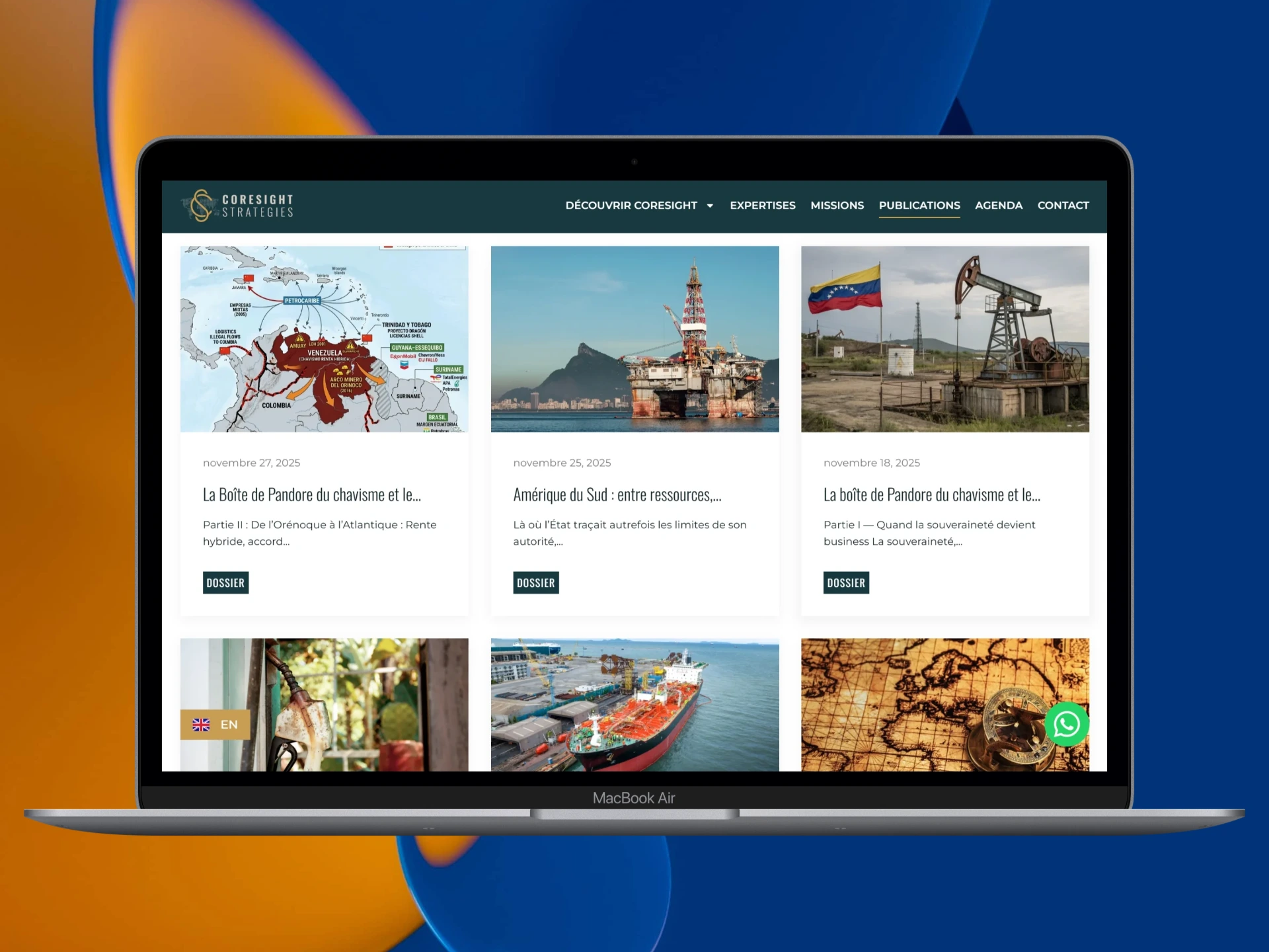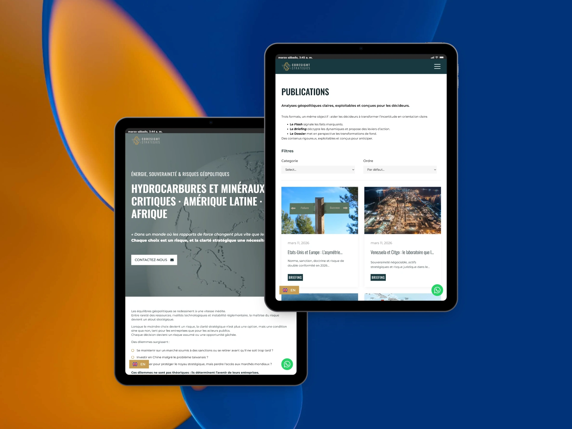 Coresight Strategies is the business of geopolitical and energy strategist Sarah Moya. She wanted a website that works both as a Blog and as an Institutional website, so we developed an elegant and highly functional build. The new site features a visuallyclean, responsive layout that perfectly balances her corporate identity with her dynamic geopolitical insights.