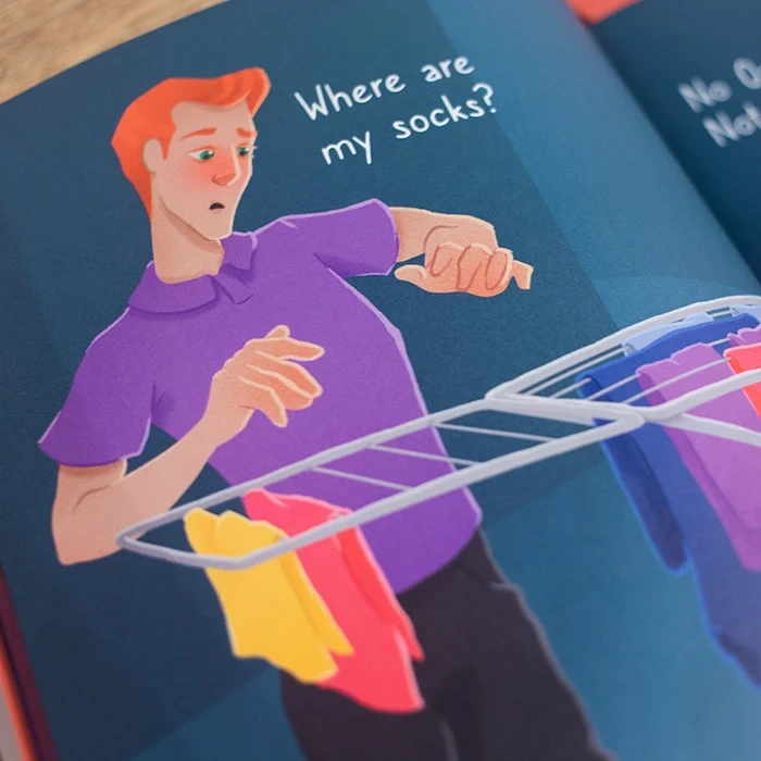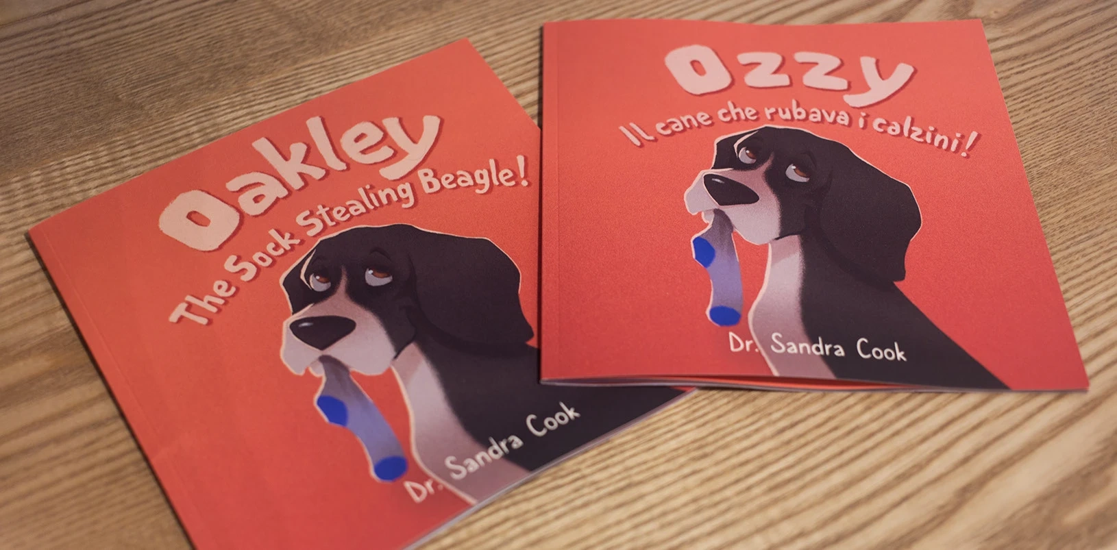 The first book was published in English and Italian. Both the original version and the translation teach little kids new words in a funny way. The story plays with a series of objects, all of which rhyme with the word “socks”. In order to maintain the rhymes in both languages, some of the objects change in the translated edition.