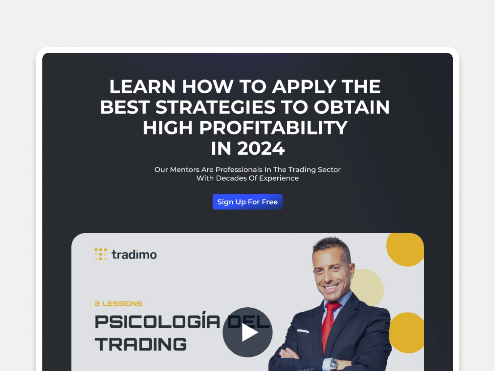 Designed a high-conversion landing page for Tradimo to boost sign-ups and course subscriptions. The design focuses on providing clear content for users.