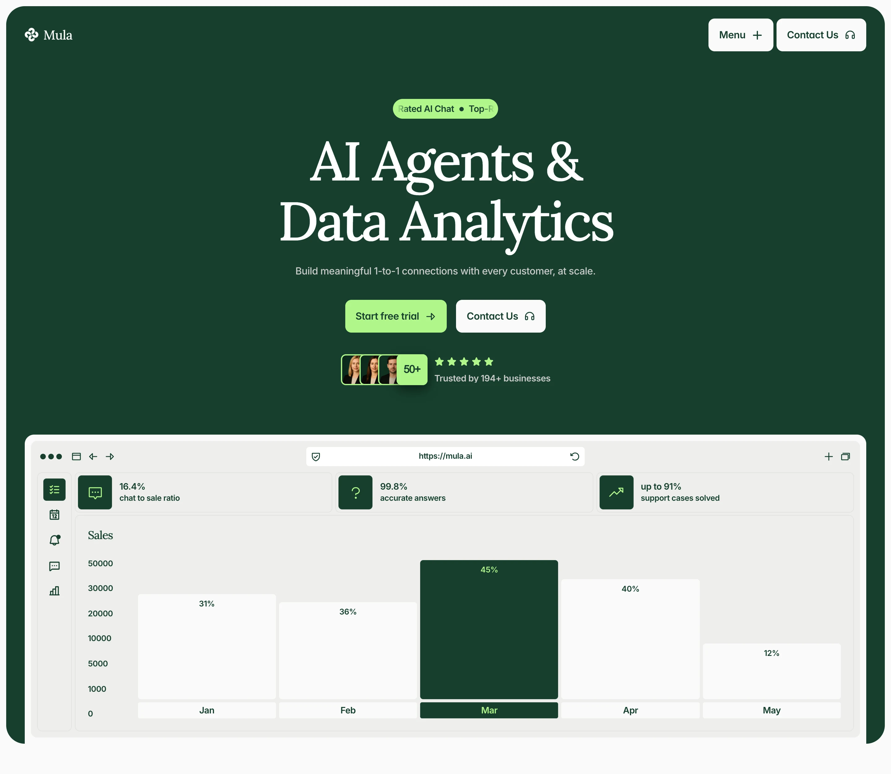 Mula — Website design for an AI and data analytics platform helping businesses create meaningful, scalable customer connections.