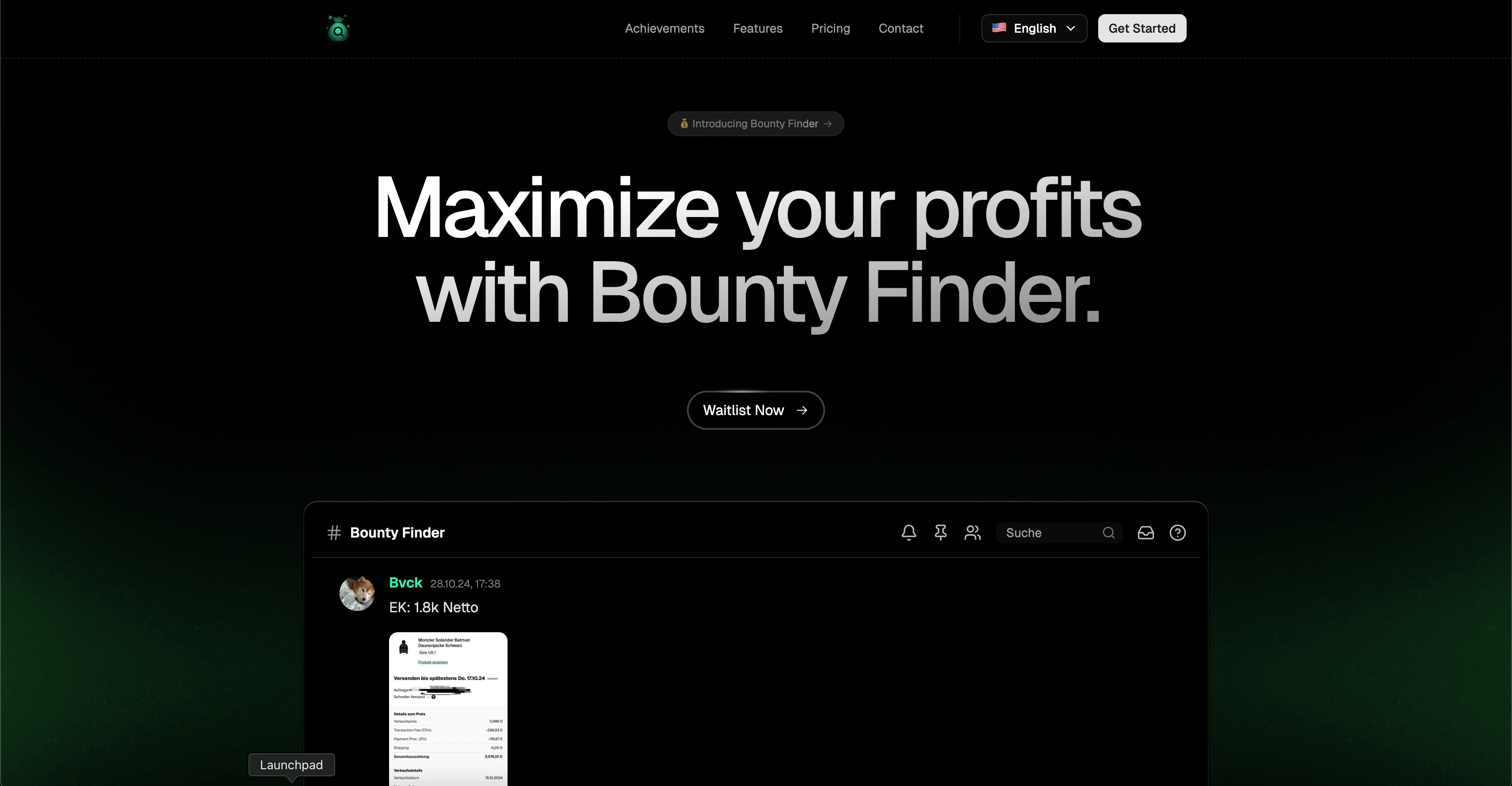 Bounty Finder is a Germany-based reselling group that needed a sleek, modern landing page. I built this responsive site using Next.js.