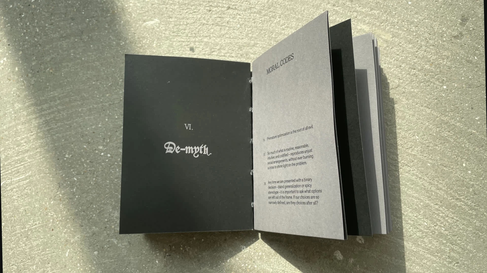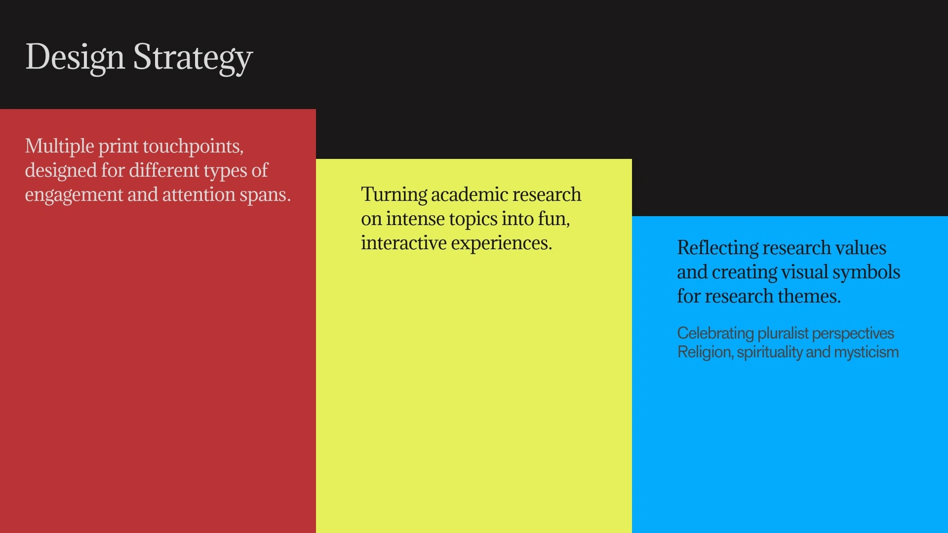 Solo design + research + writing project. Turning rigorous research into multiple print touchpoints for different types of engagement and attention spans.