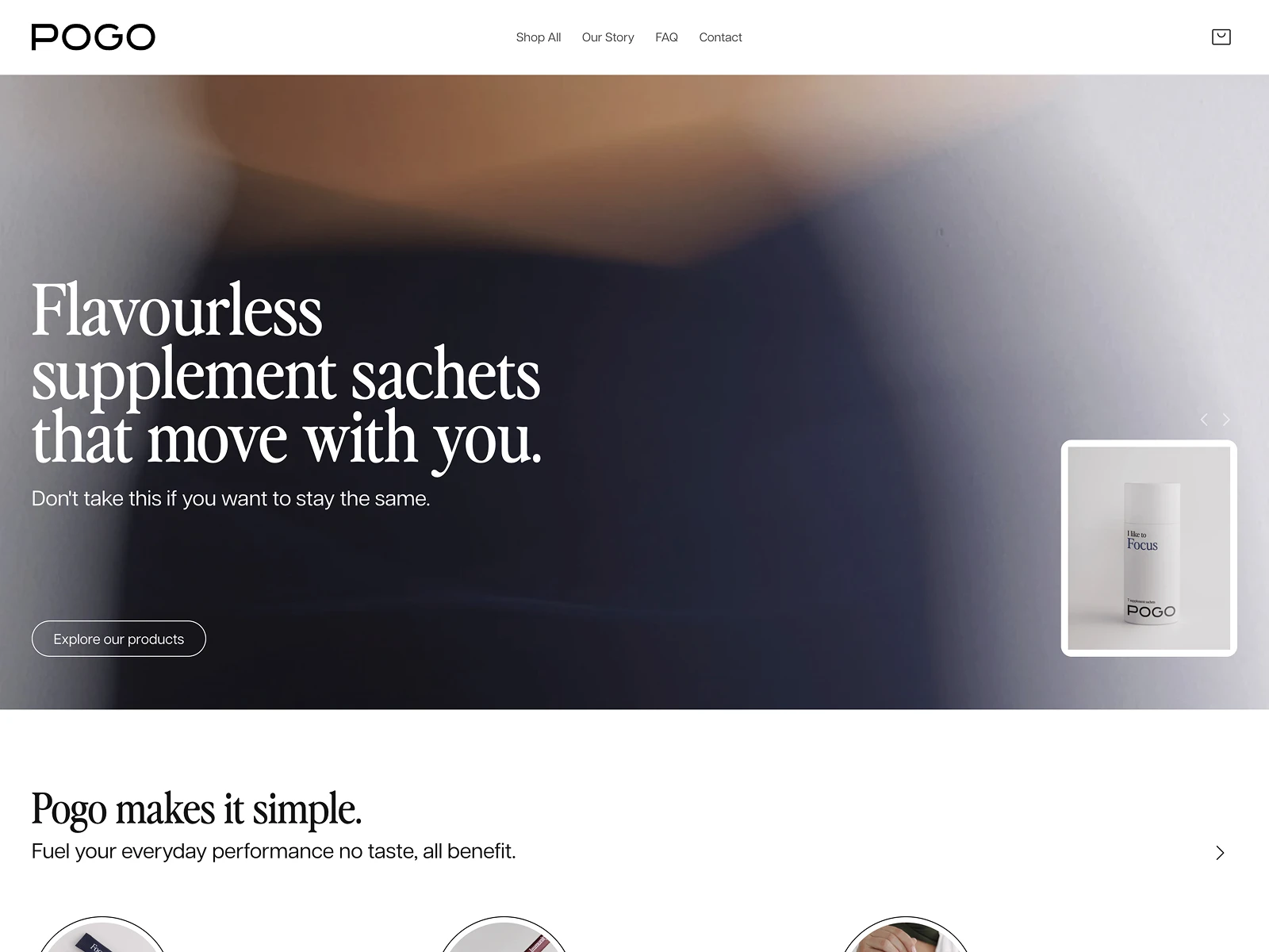 A contemporary Shopify store for Pogo, a nootropic drink boosting energy, focus and mental clarity, optimised for conversions and seamless monthly subscriptions