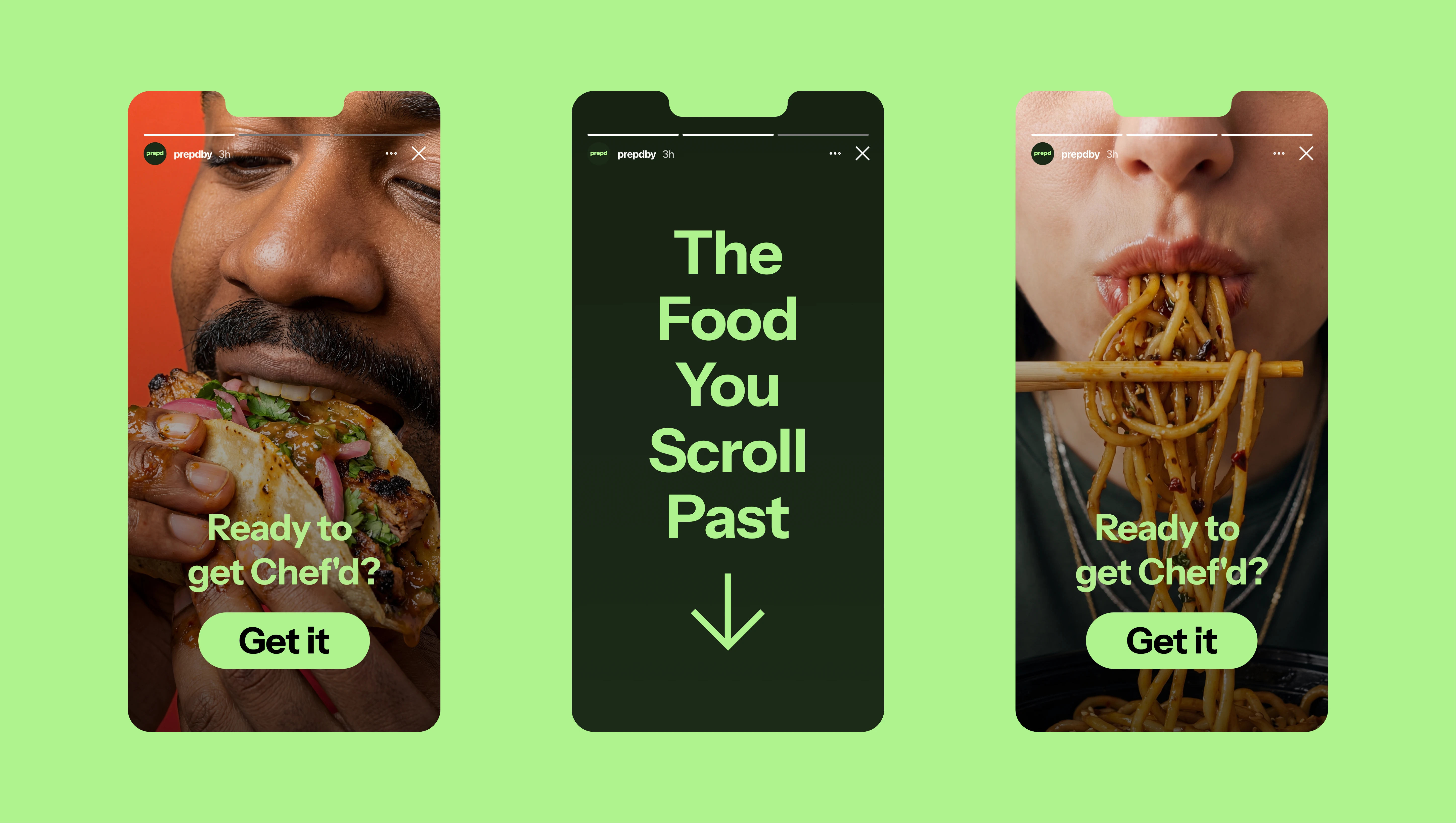 The visual identity balances clean geometry with playful details, creating a system that feels modern yet approachable. Bold compositions, vibrant contrasts, and expressive imagery position Prepd as a personality-driven brand — one that brings attitude and appetite into the food-tech space.