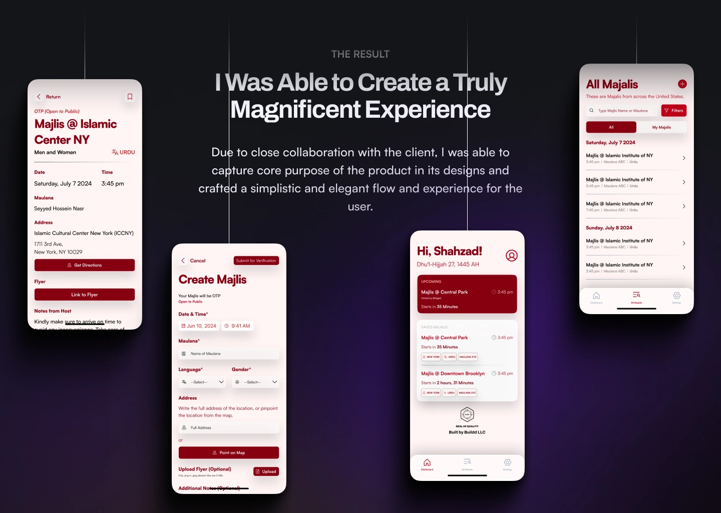 MajlisNearby™ is the world's 1st app for creating, scheduling, and sharing Majalis. I designed the complete app, admin panel website and the branding!