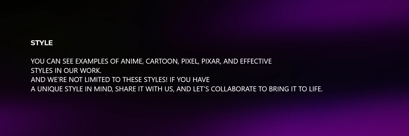 Using advanced AI, we applied unique styles like Anime, Cartoon, Pixel, Pixar, and Effective to enhance each video. Have a different idea? Let’s discuss