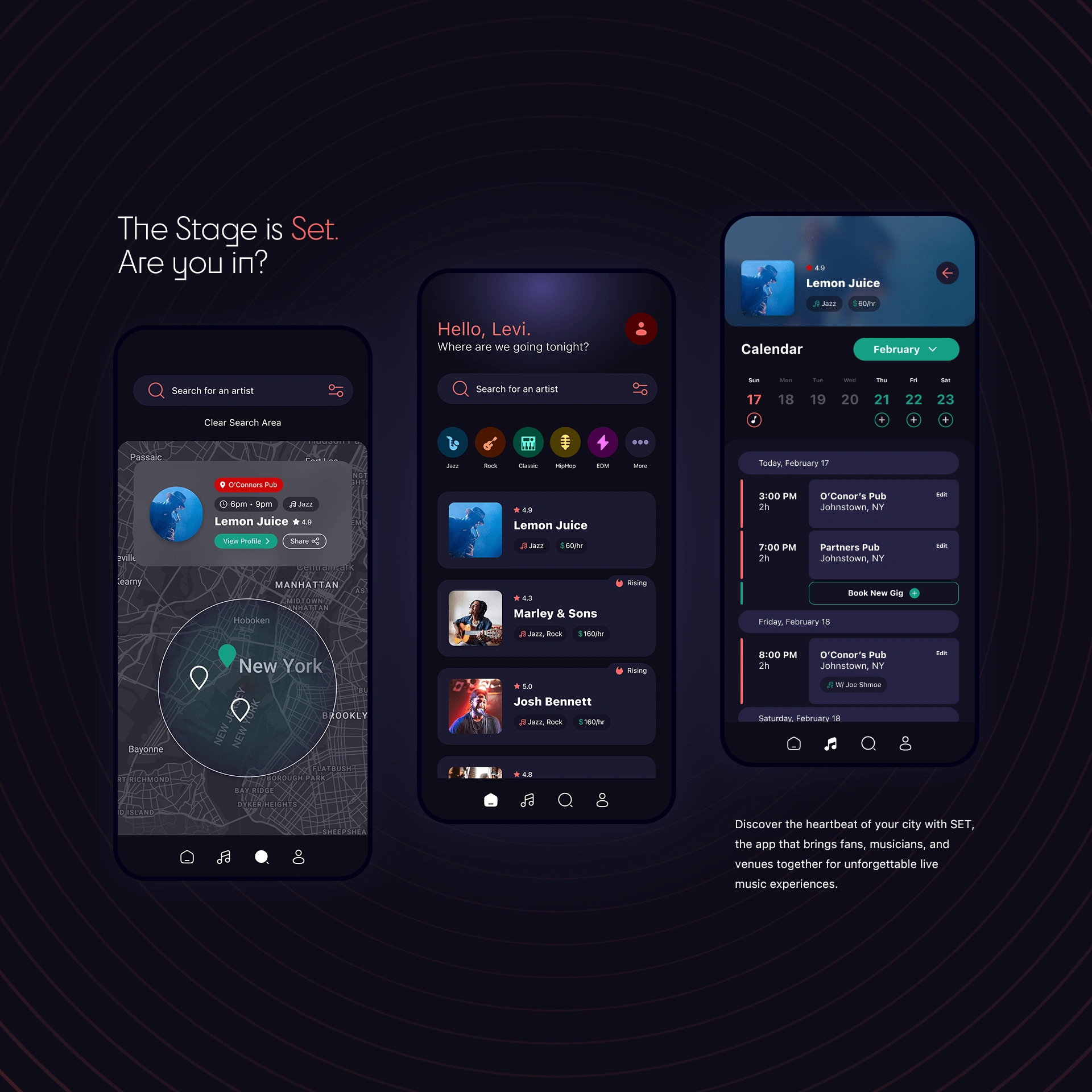 Discover the heartbeat of your city with SET, the app that brings fans, musicians, and venues together for unforgettable live music experiences.