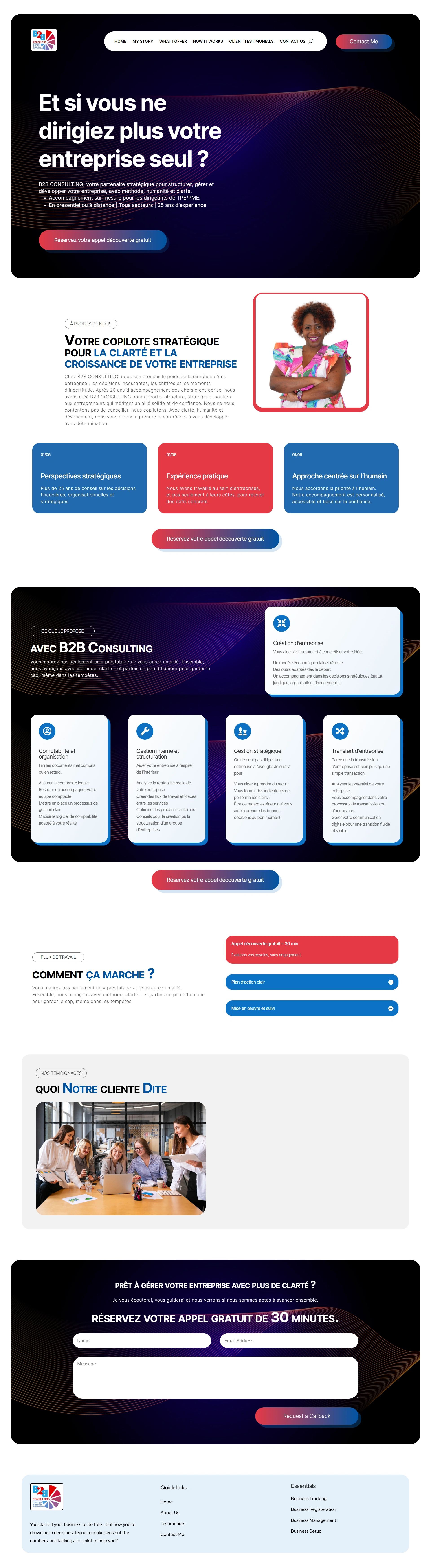 Professional B2B consultation website built with Divi, featuring clean design, service pages, and lead-focused layout.