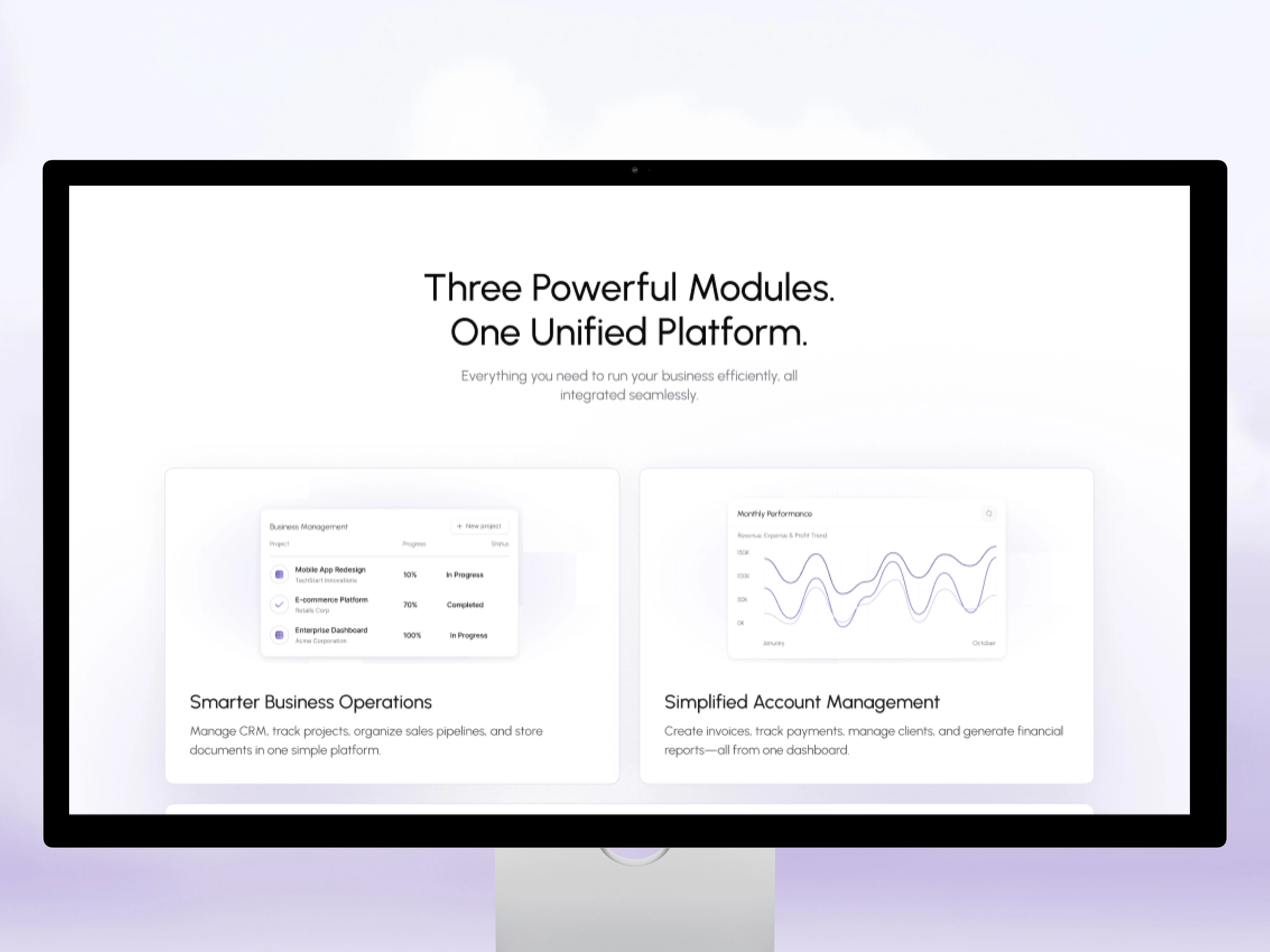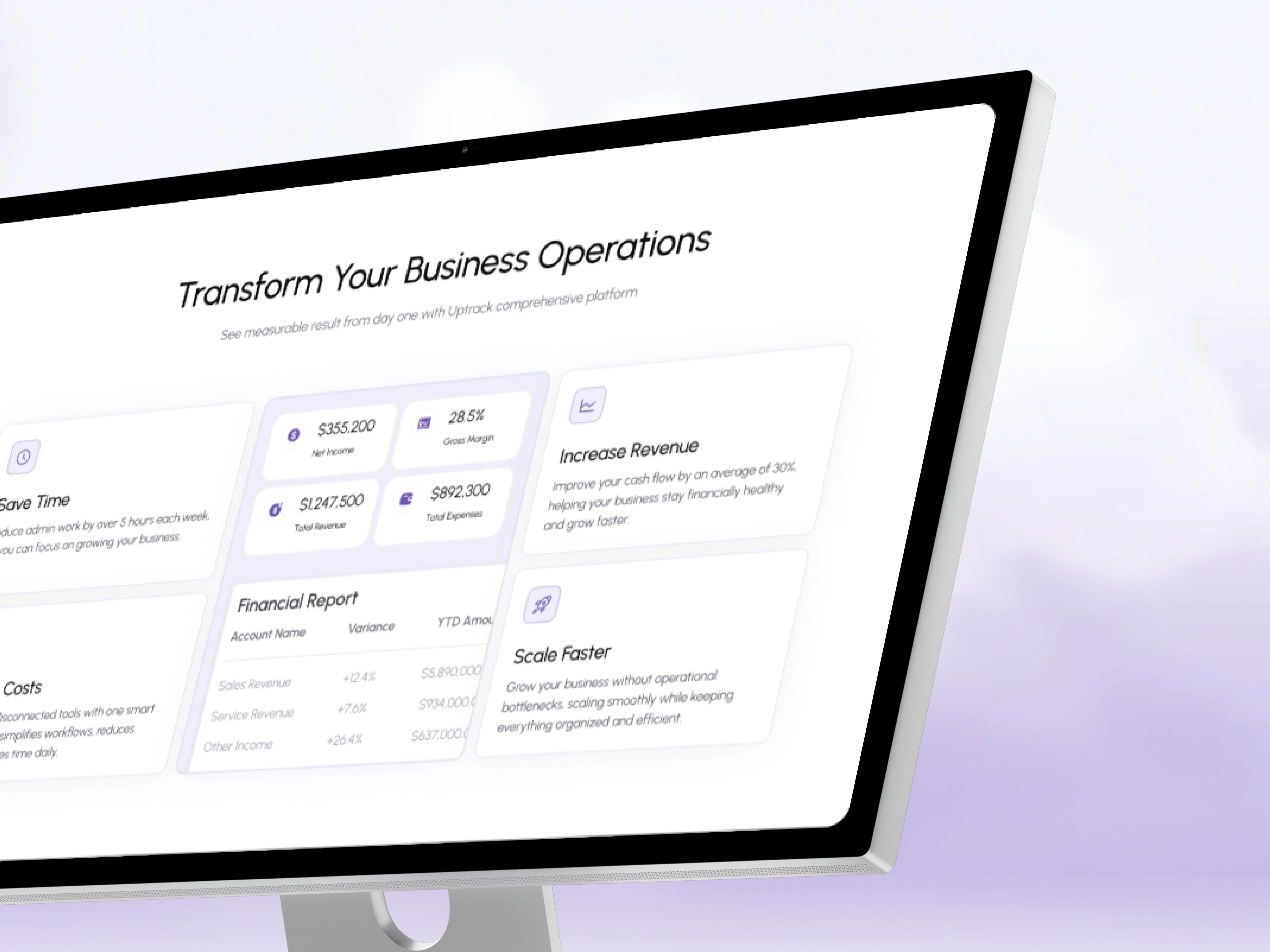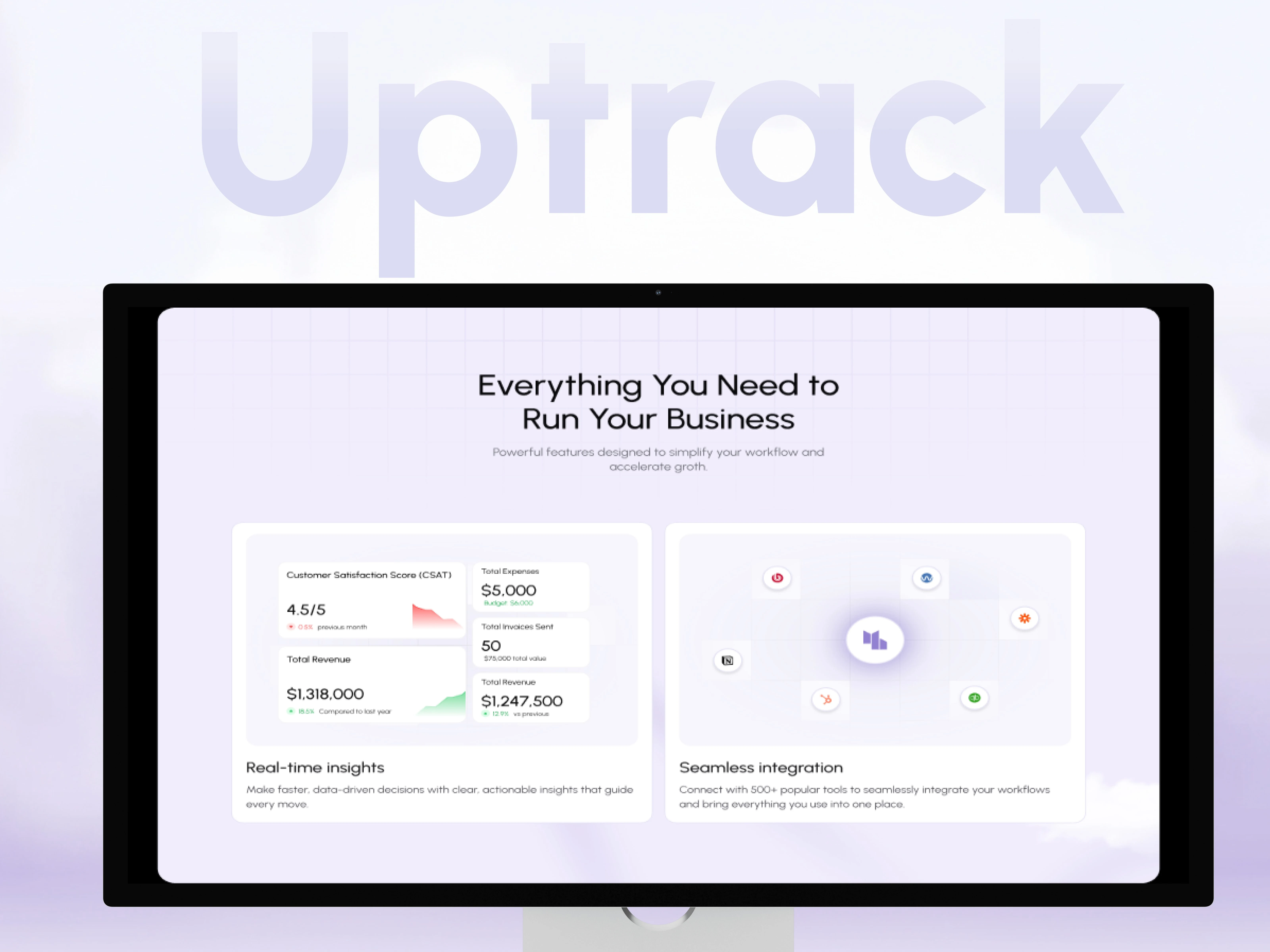 Designed and developed a dynamic SaaS website for Uptrack, an all-in-one business management platform built for startups and SMEs. The site highlights Uptrack’s integrated approach to CRM, accounting, and bookkeeping — all within a single dashboard. Focused on clarity and conversion, the project features modern UI design, smooth scroll animations, and engaging micro-interactions that communicate the brand’s tech-forward identity.