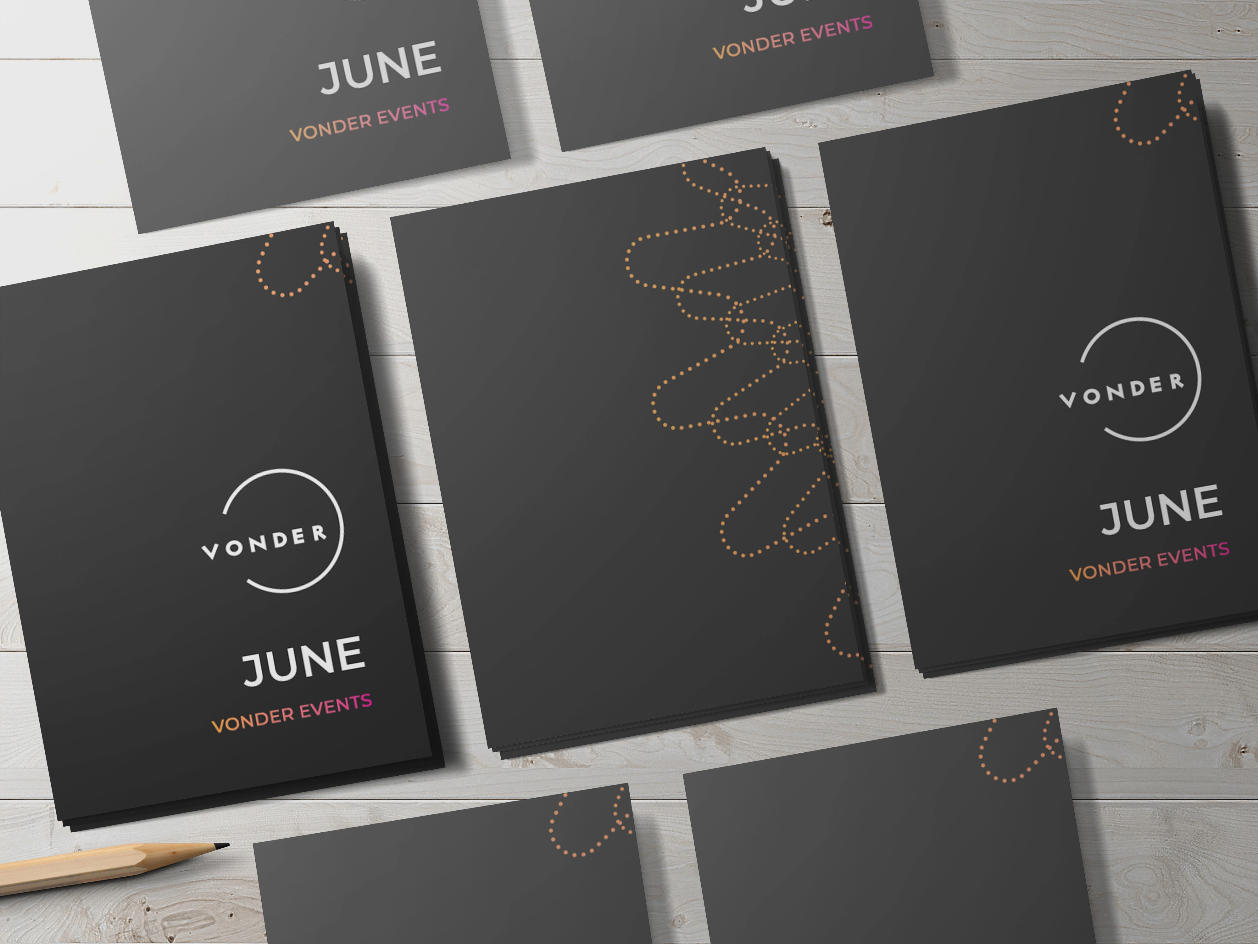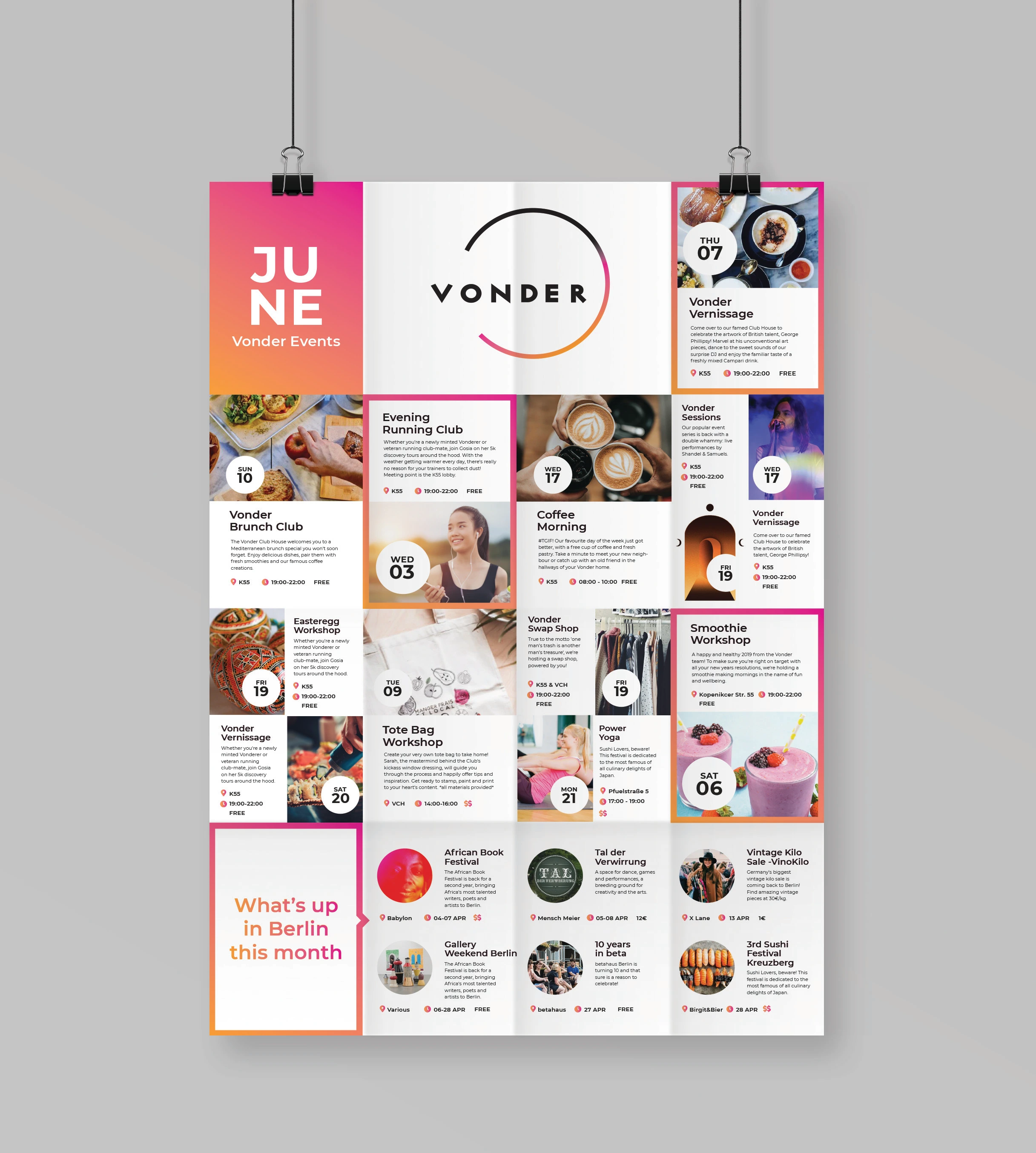 A2 Format fold out Poster. On one side the calendar of activities, and on the other side an artwork