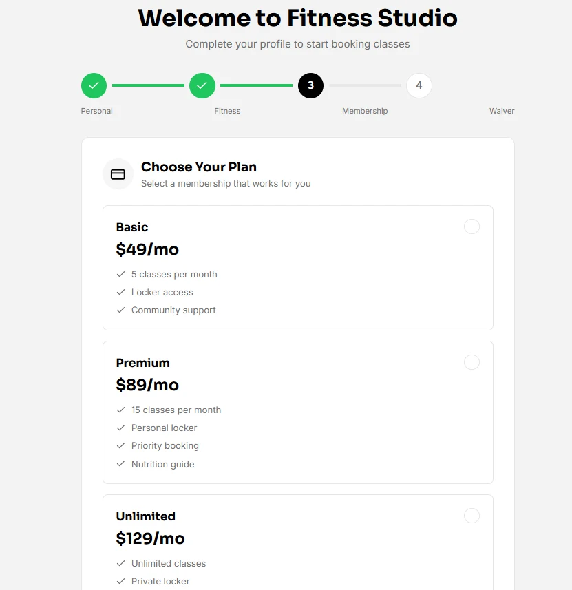This platform is a no-code client onboarding and class booking system designed to streamline the registration and scheduling process for a fitness studio. It centralizes client information, automates bookings, and provides a clean admin dashboard for staff management