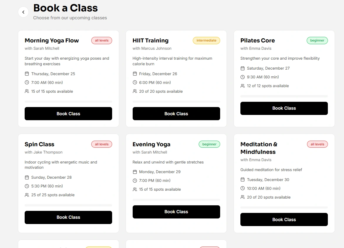 Dynamic class booking system that prevents double-booking and tracks available slots
