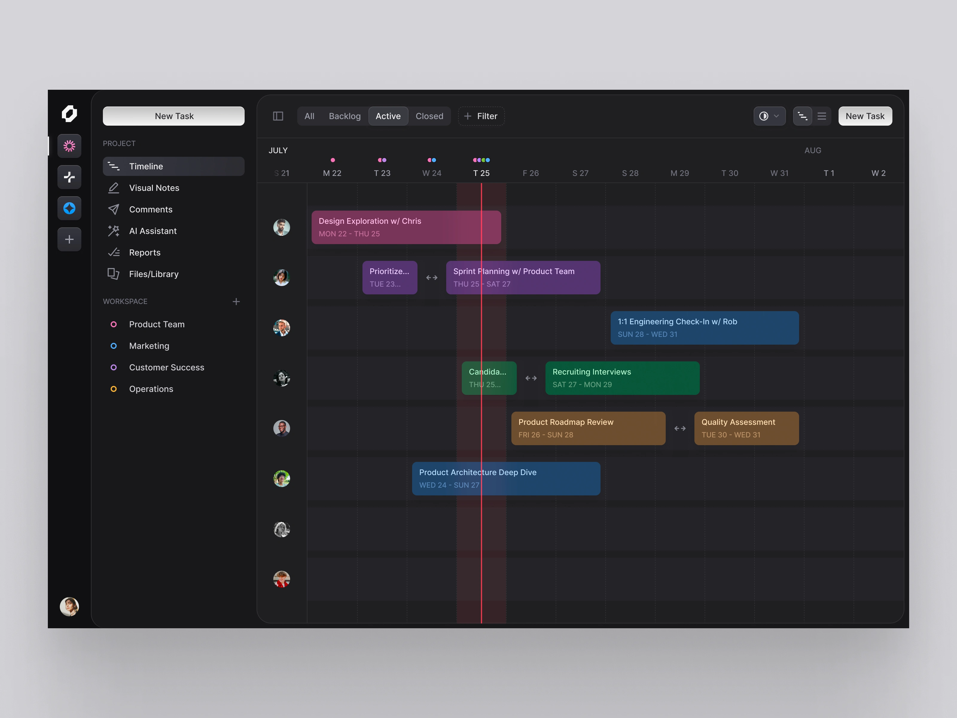 A Gantt chart interface I designed for a team planning app.