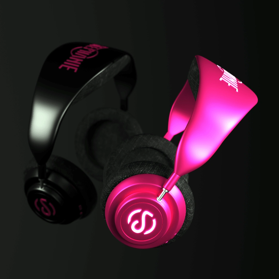 These stylish pink headphones blend fashion with functionality, offering an unparalleled listening experience. Minimalistic and elegant design.