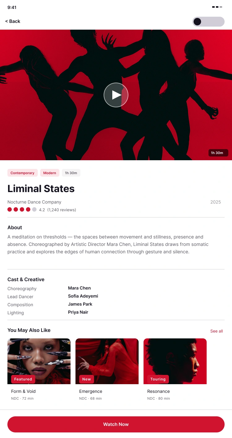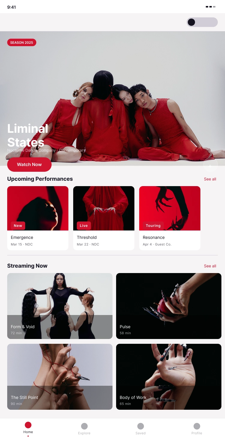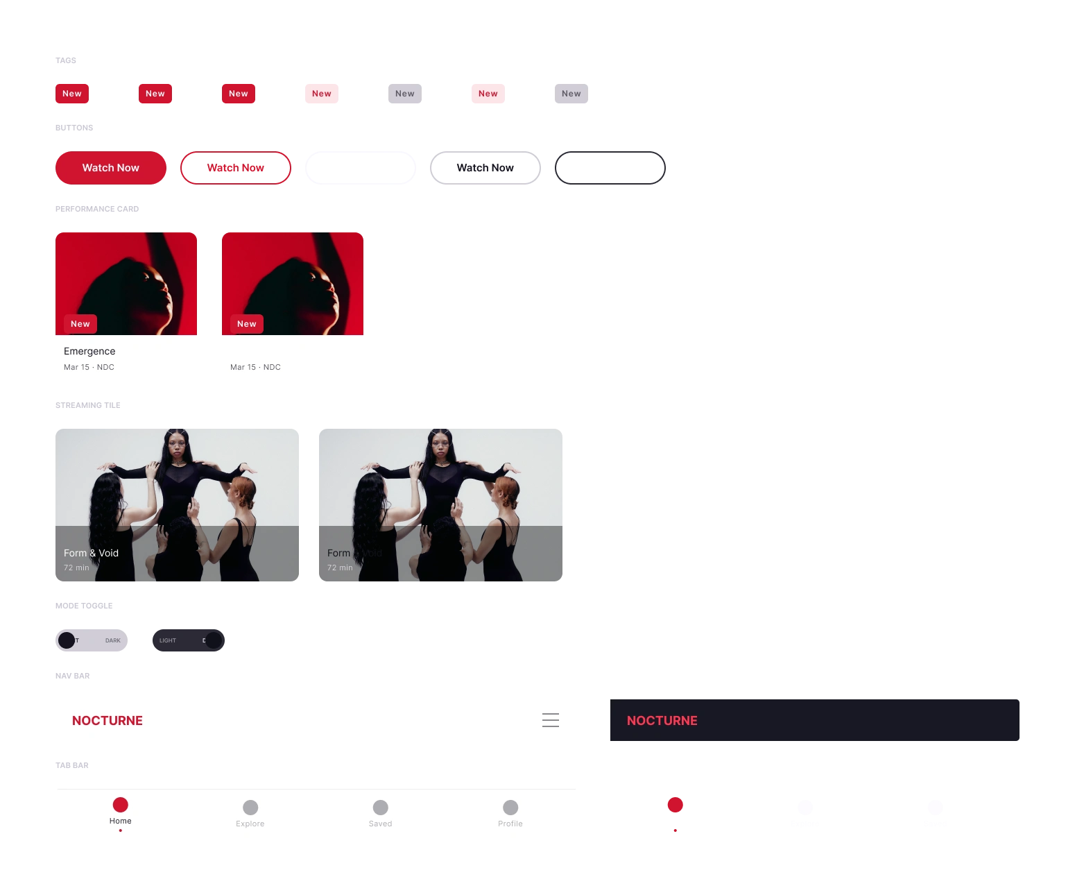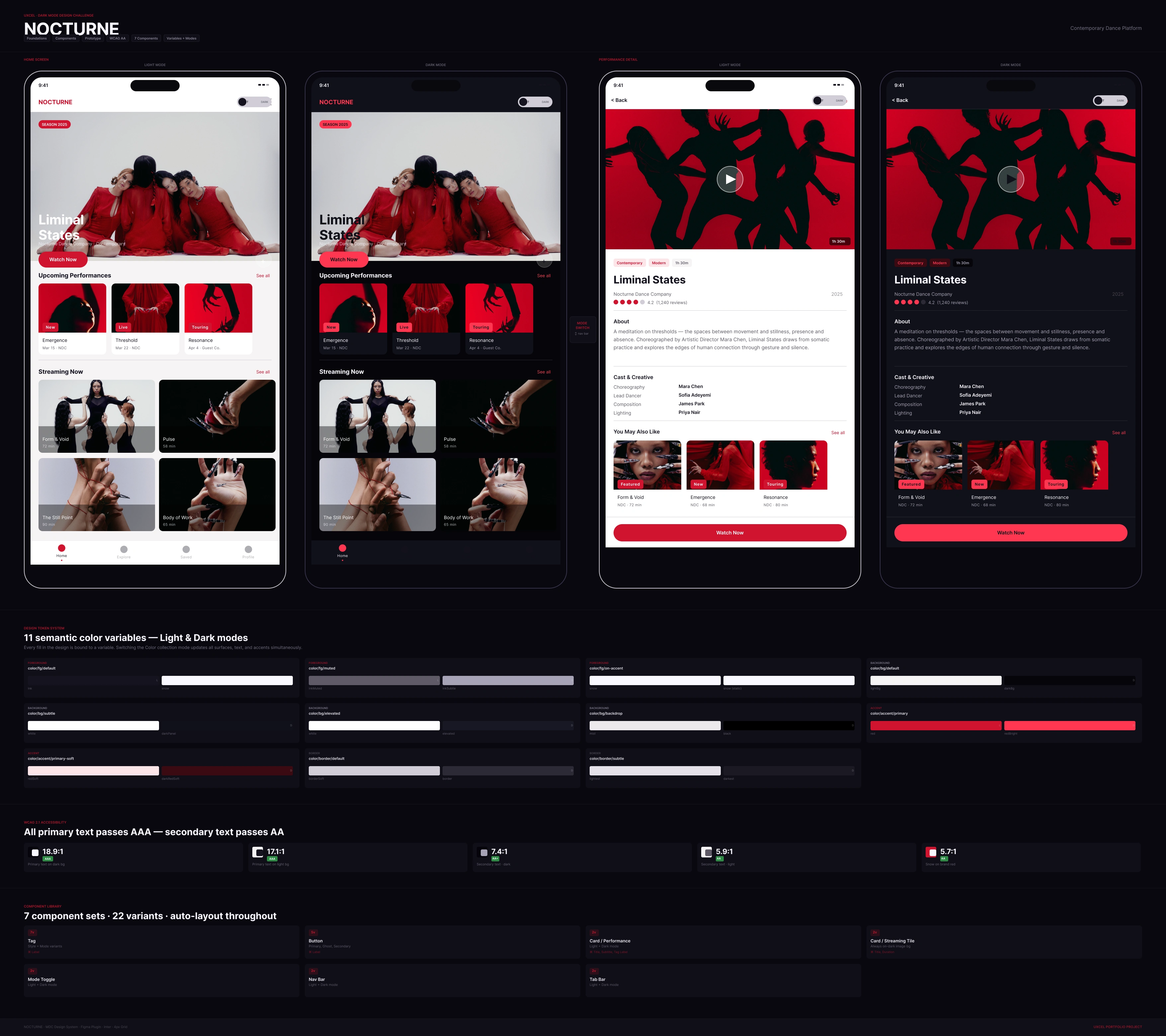 Card / Performance — 204px content card with image, title, subtitle, tag