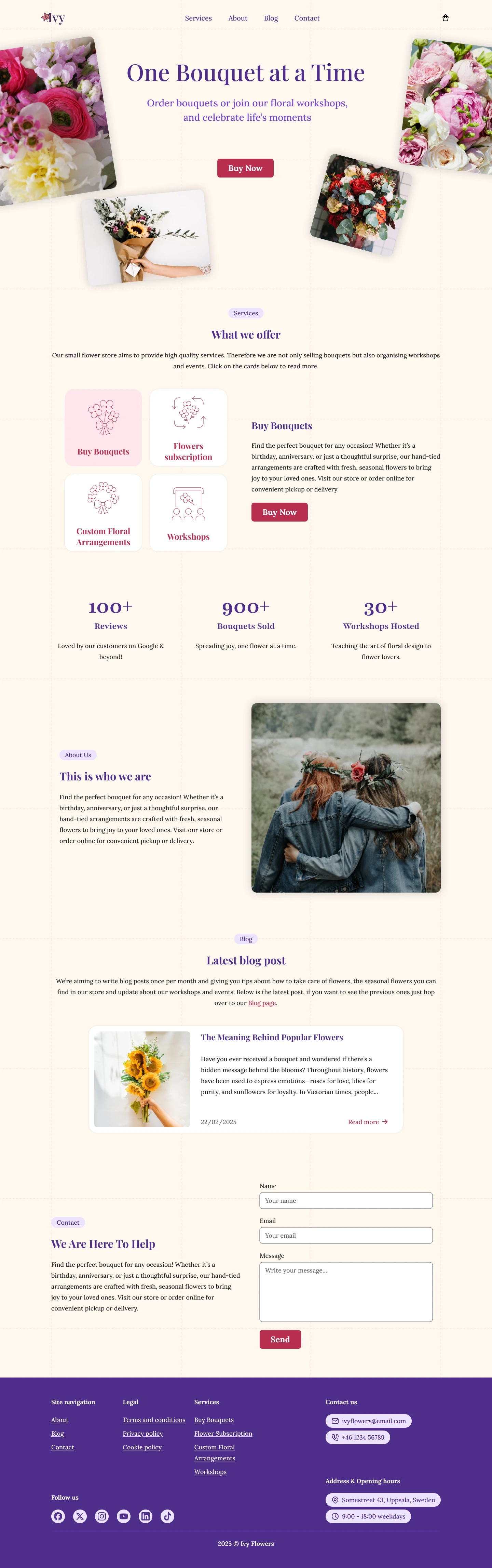 This is a project, inspired by a real flower store. The idea is to design a simple and good-looking website which later to be developed in Framer.