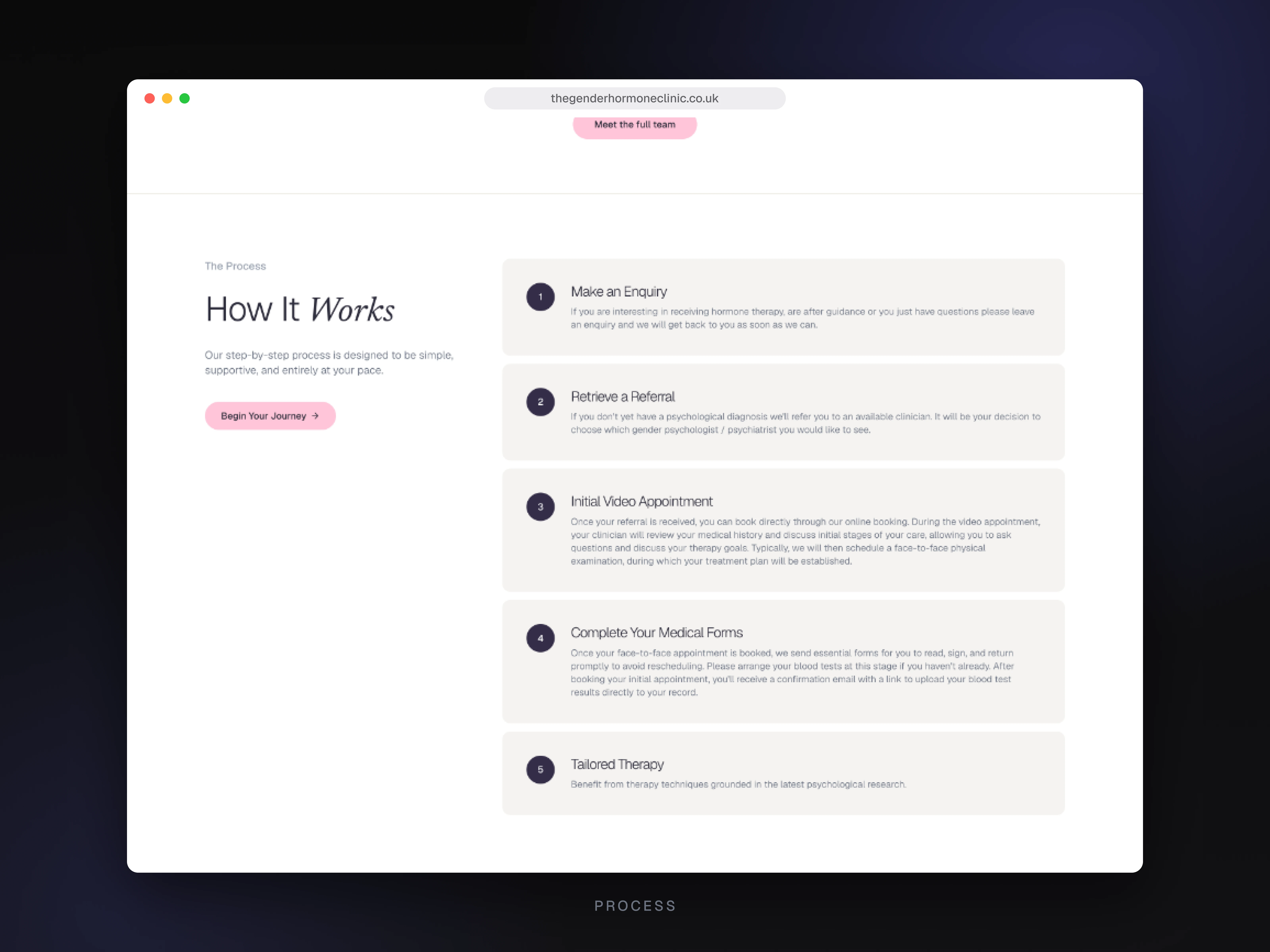 Private hormone therapy is a sensitive, high-stakes area where trust, clarity and credibility need to be visible from the first visit. The clinic needed a site that felt clinical and warm at the same time, that walked prospective patients through the process step by step, and that let the team publish new service pages, clinician bios and FAQs without a developer in the loop. The brief also called for best-in-class performance and accessibility given the patient demographic.