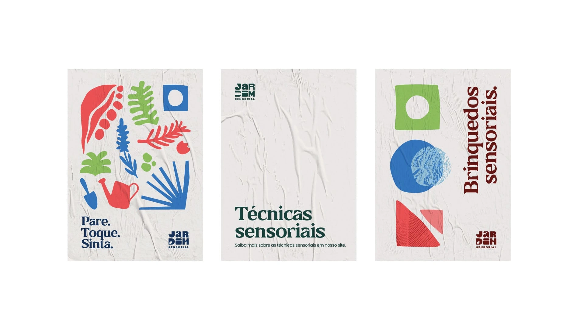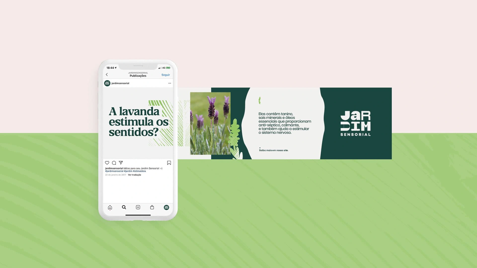 The Jardim Sensorial brand goes beyond the physical space, which includes the garden and face-to-face courses, and also has an online platform to share knowledge, always focusing on sensory techniques. In order to convey the concept of the project, the entire identity seeks to create sensations through different visual stimuli, such as typography, colors, supporting elements and textures.
