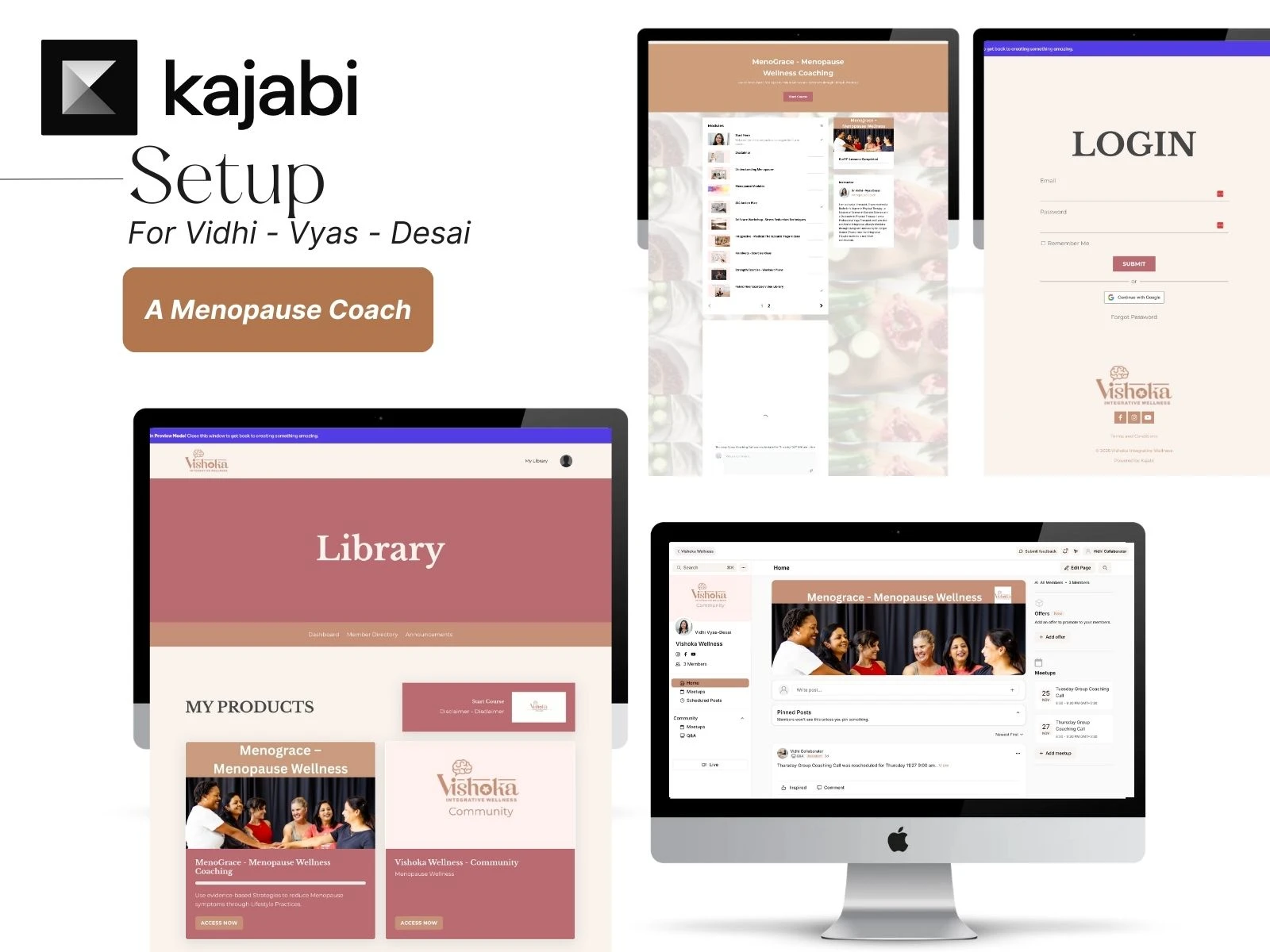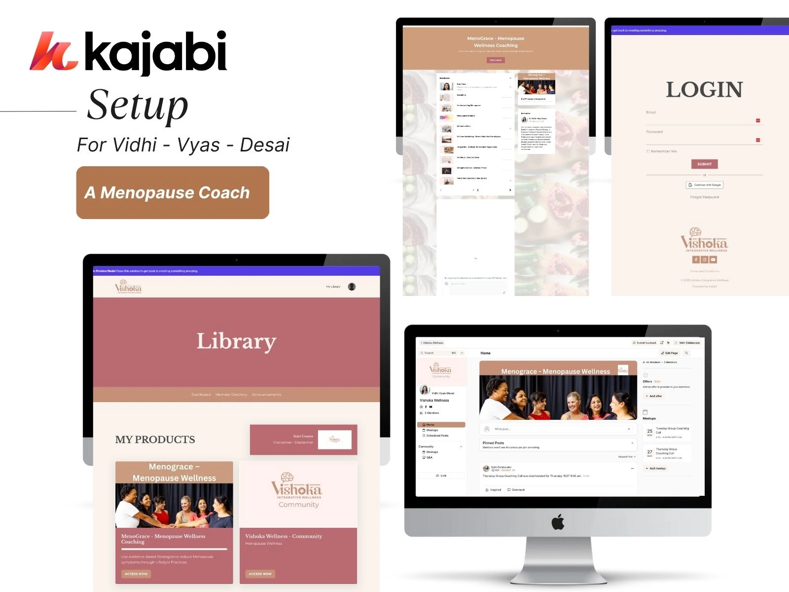 Login and library pages that echoed her brand identity across the Kajabi experience
