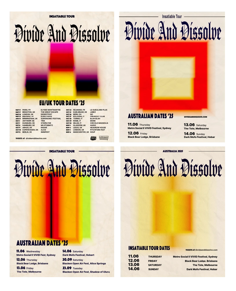 A curated selection of posters, editorial compositions, and visual identity fragments developed across cultural commissions and independent explorations. The work spans music, fashion, and print, investigating typography, color, and composition as tools for visual storytelling.