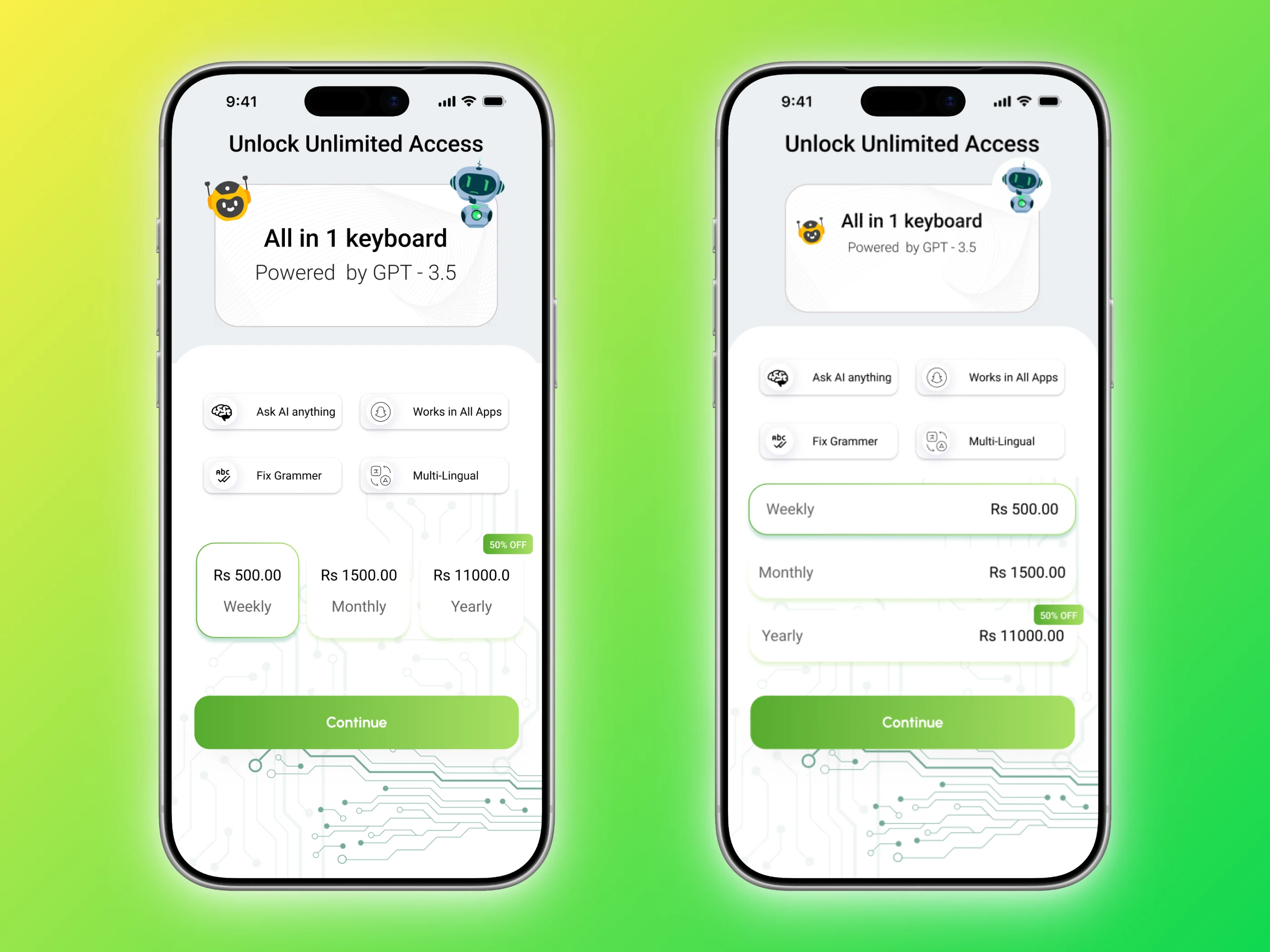 A modern and elegant In-App Purchase Screen designed to enhance user trust and promote upgrades.