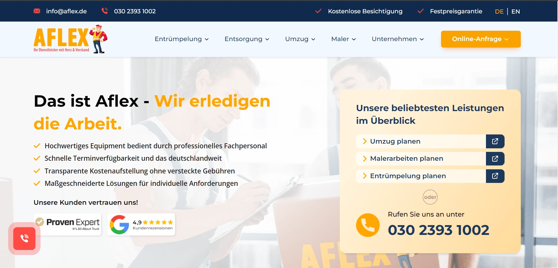 Mover, Cleaning & Painting services web application for Germany and nearby countries.