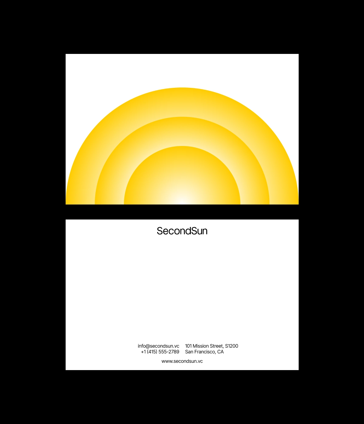 The logo mark is derived from this path. Its arcs echo the rising and setting of the sun, creating a symbol that is simple, timeless, and instantly recognizable. The name “SecondSun” reinforces the idea of a renewed source of power—one that exists beyond the limitations of fossil fuels.