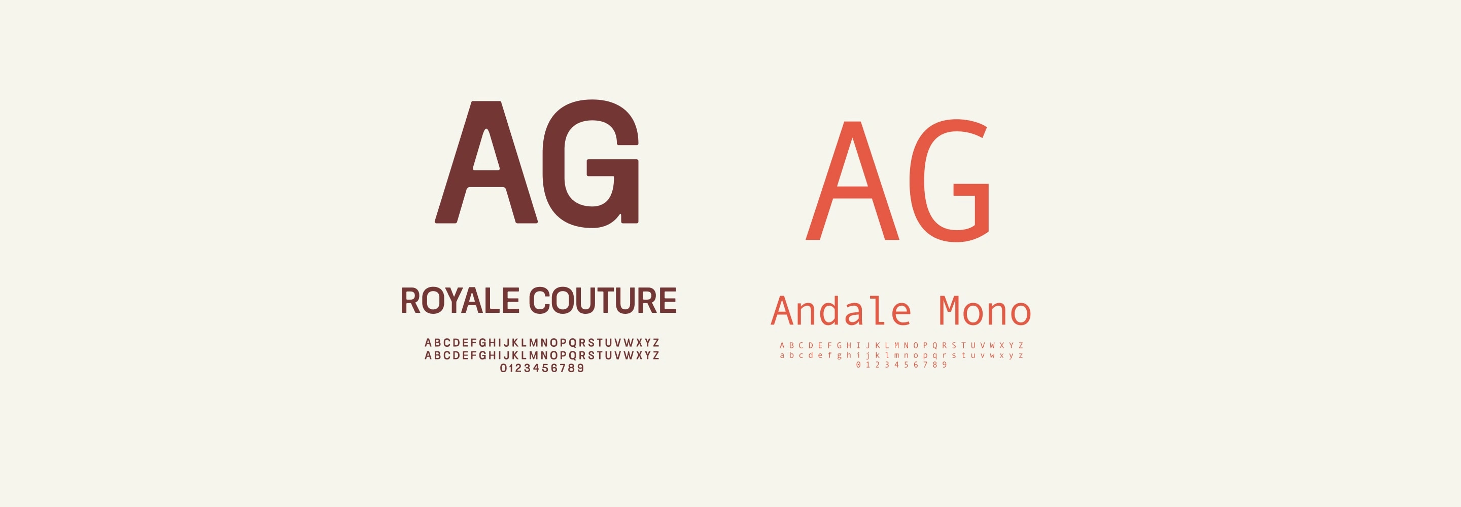 Royale Couture brings presence and character. Andale Mono introduces rhythm and utility.