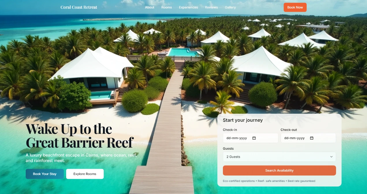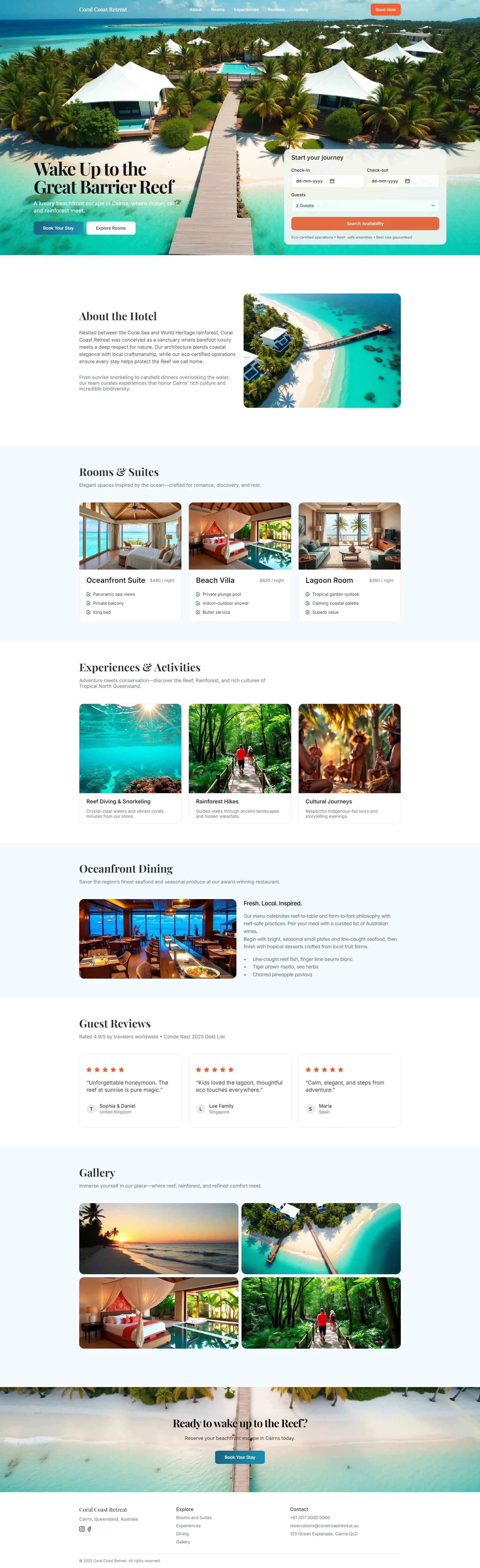 Designed a luxury hotel landing page for Coral Coast Retreat.