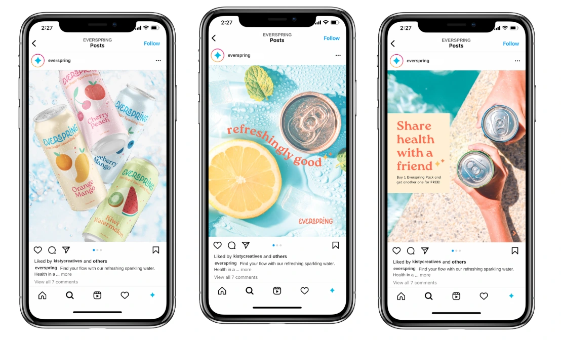 The final identity feels consistent and refreshing across all applications. Clear hierarchy and bright visuals make the product easy to recognize and enjoyable to explore. Everspring turns healthy choices into small moments of joy—simple, honest, and uplifting.