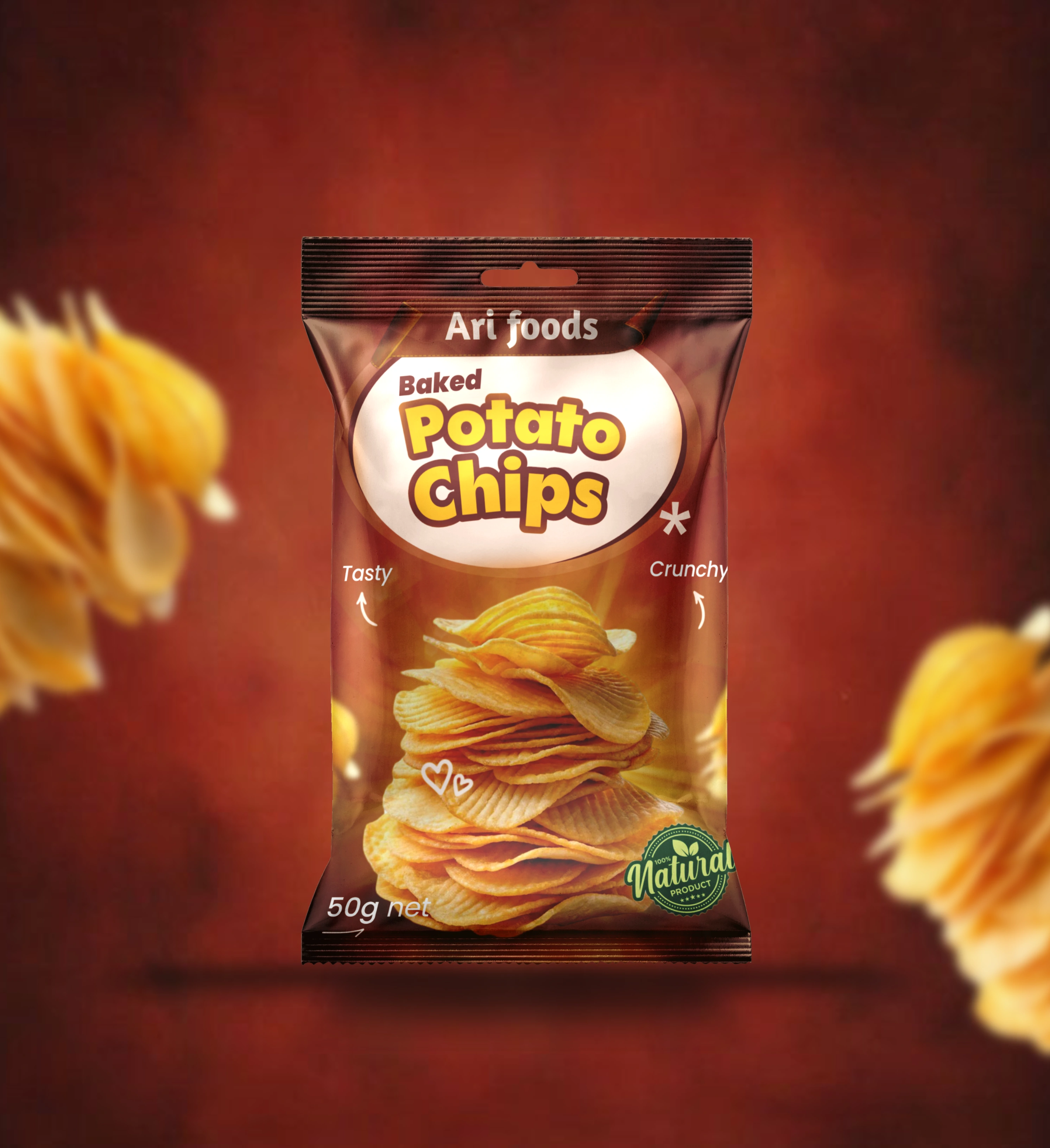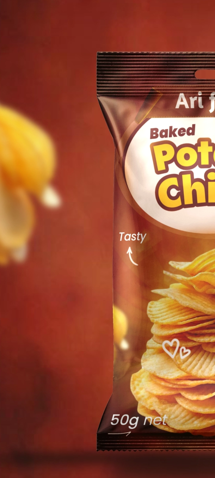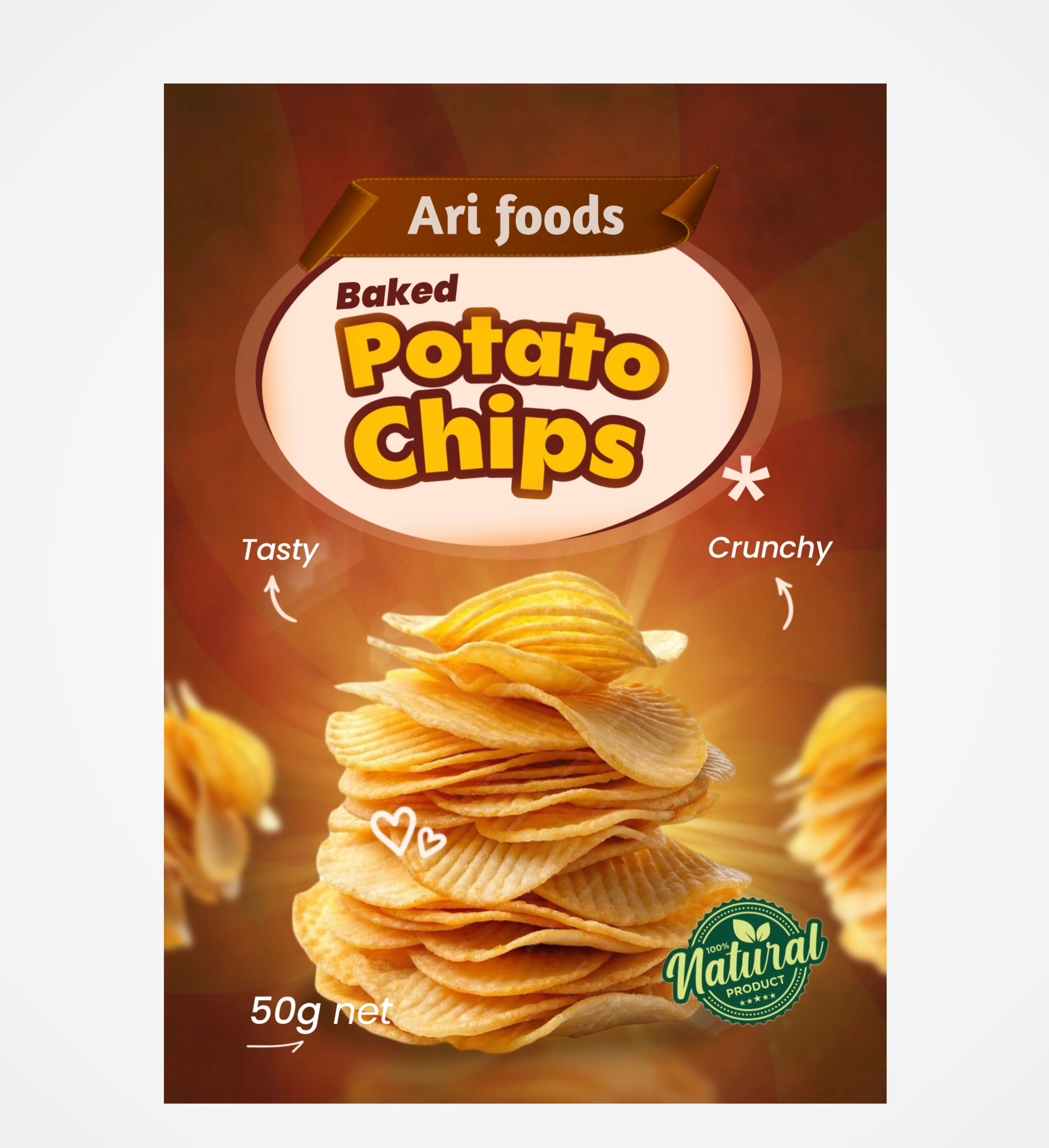 This is a design I worked on for arifoods baked potato chips.The brief is to design an elegant and eye catching label/ package design that will stand out.