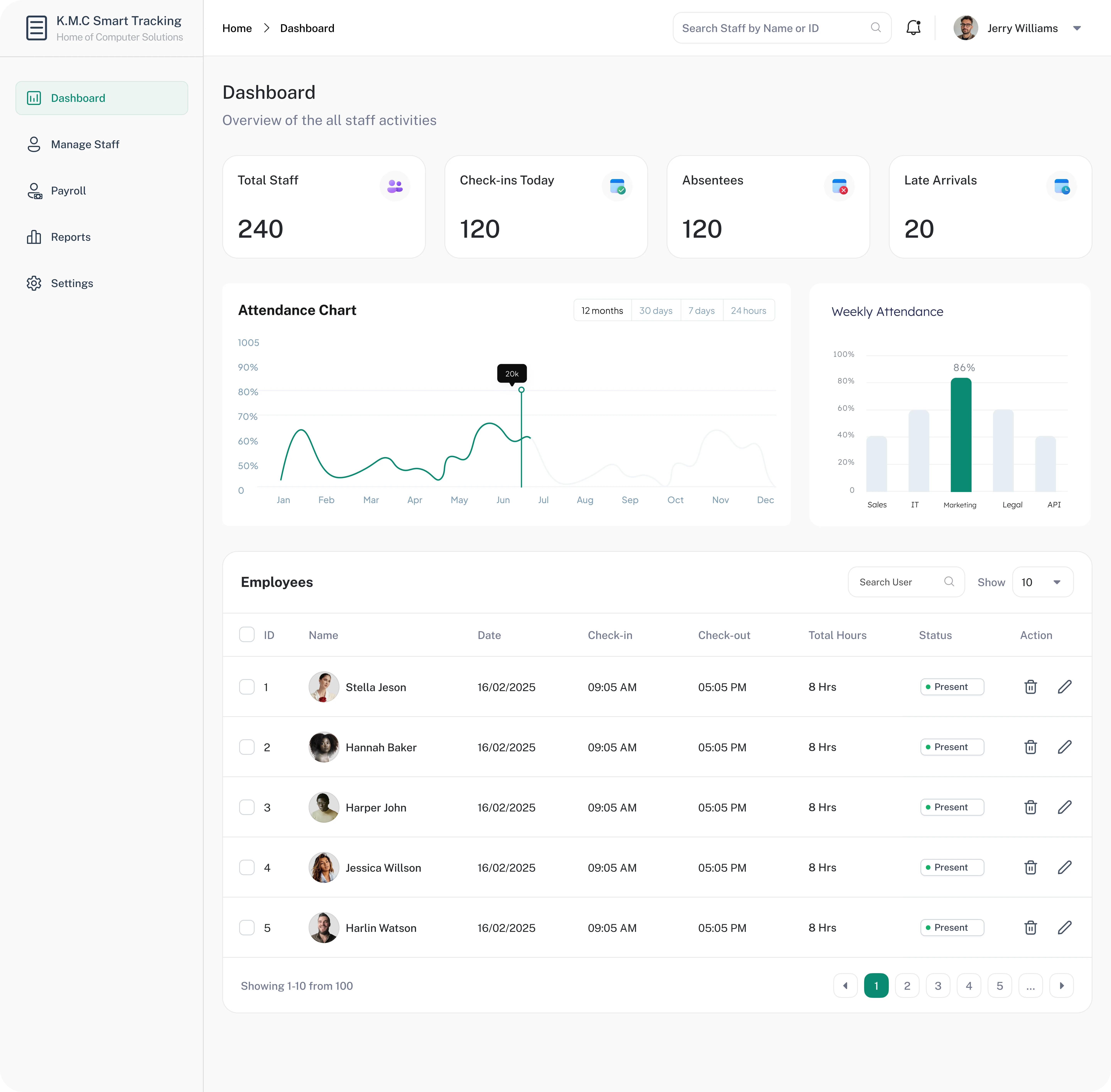 SmartTrack introduced a dual-platform system combining a mobile app and a web dashboard. Employees scan unique QR codes via the app to log attendance, while Firebase stores exact timestamps and calculates total working hours automatically. Administrators access a web dashboard to manage profiles, view real-time attendance, and generate or export reports. With QR authentication, Firebase-backed security, and analytics features, SmartTrack provides an efficient, secure, and scalable solution.