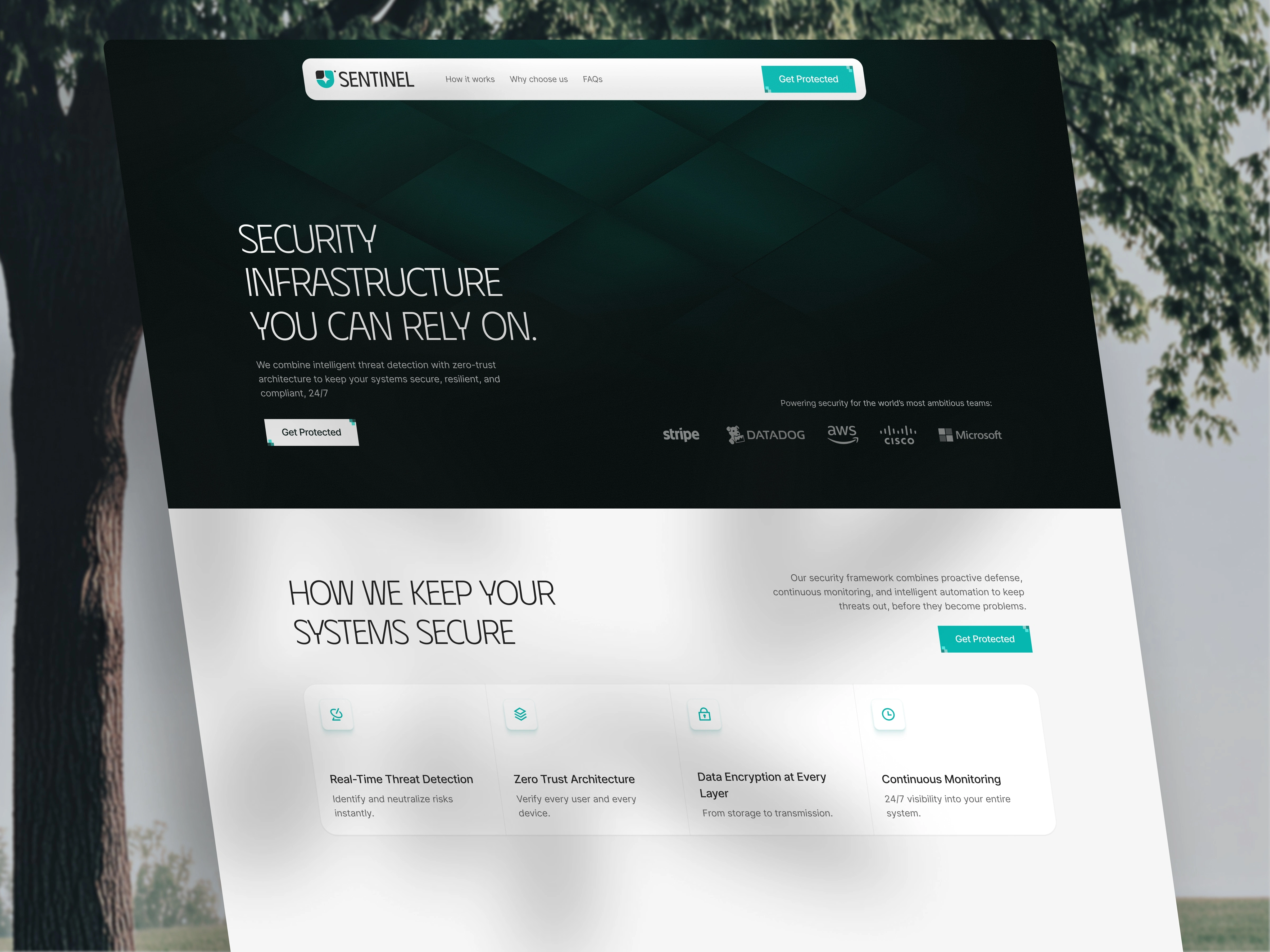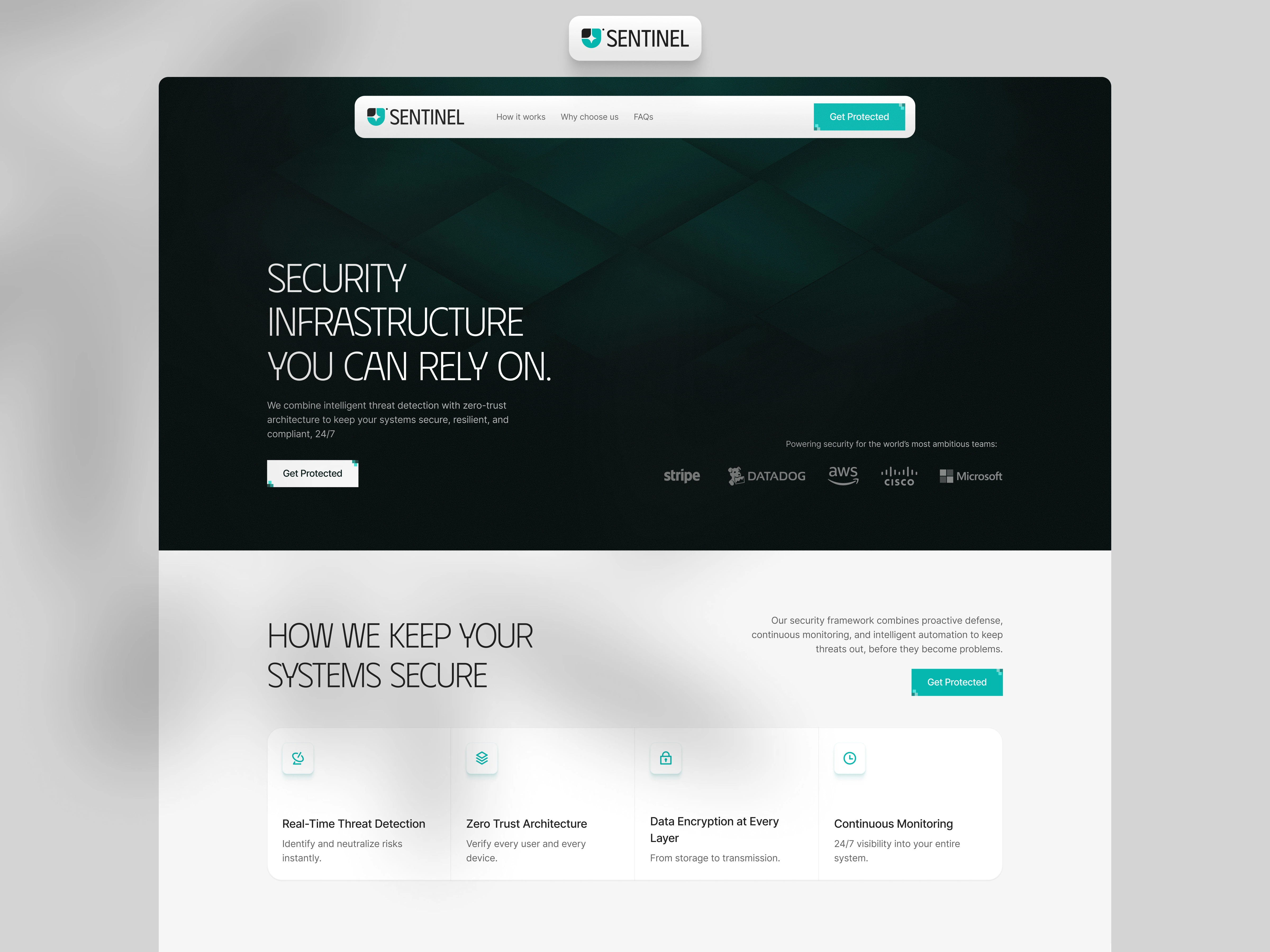 The goal of this project was to design a landing page that communicates trust, control, and reliability, while clearly positioning Sentinel as a solution for high-stakes environments.