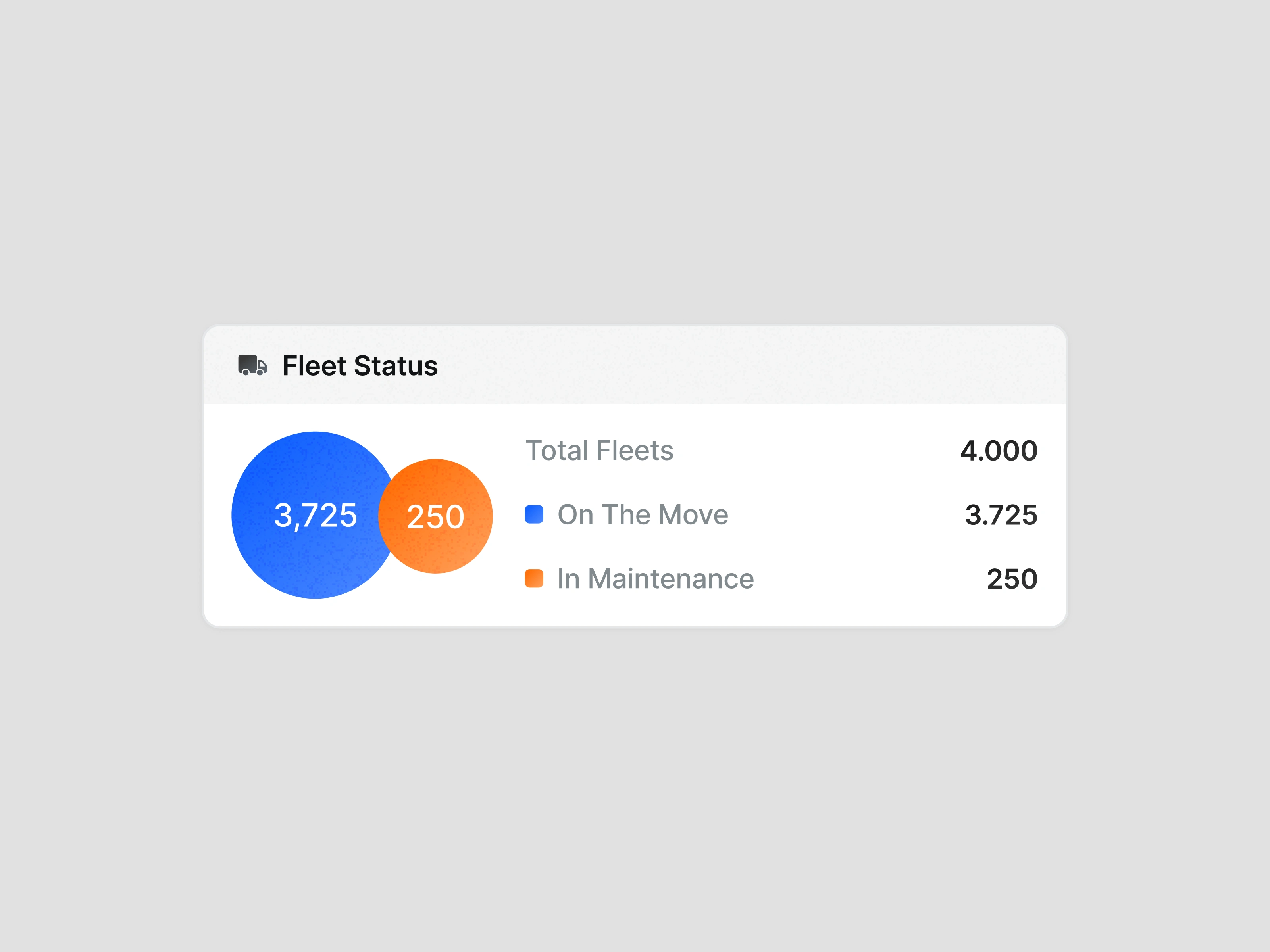 Modular UI components for the Trukun platform. Widgets clearly display key logistics metrics like fleet efficiency, capacity, and inventory levels.