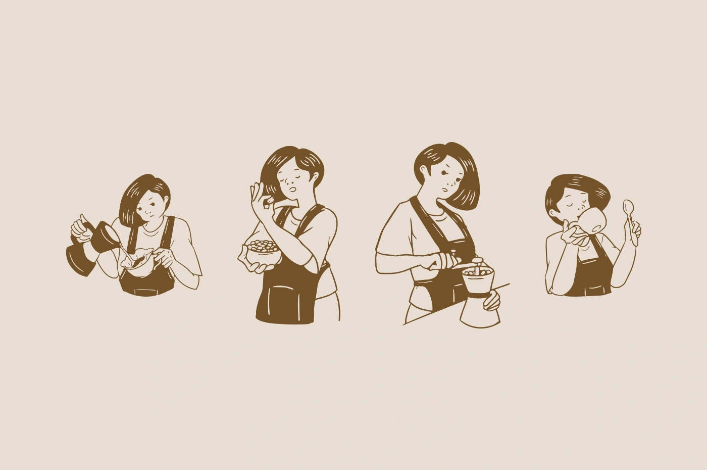 Bean Brew is a coffee brand rooted in warmth, craft, and everyday ritual. Created as a space where coffee meets comfort, the brand focuses on simple moments—brewing, sipping, and pausing amid daily routines. The visual identity combines earthy tones, bold handcrafted typography, and expressive illustrations to reflect an honest and approachable character. Each element is designed to feel familiar and welcoming, bringing a sense of calm and warmth to the coffee experience.