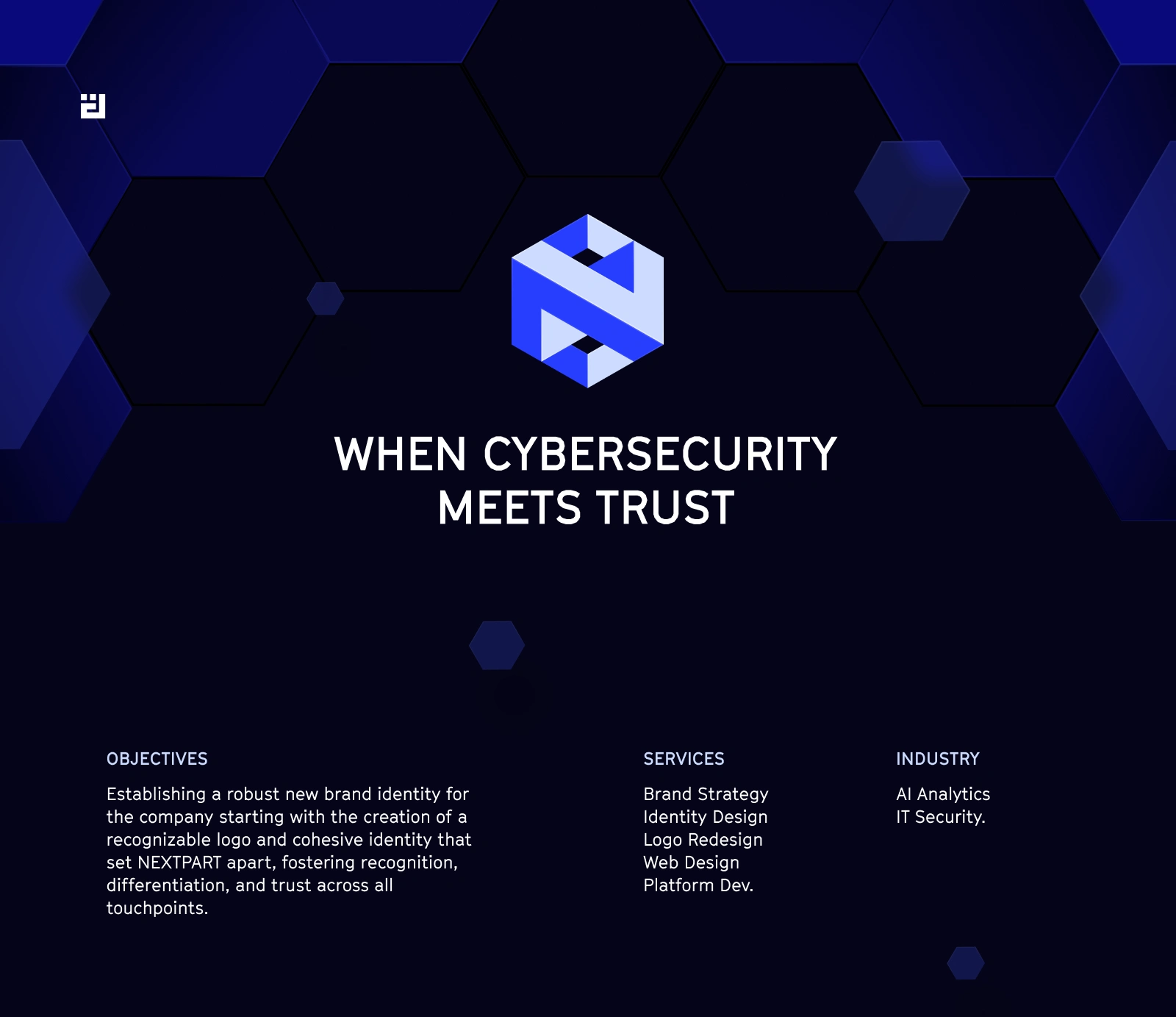 We partnered with NextPart, a cybersecurity company redefining how businesses protect and manage their digital infrastructure, to create a strategic visual identity that reflects trust, intelligence, and modernity.
