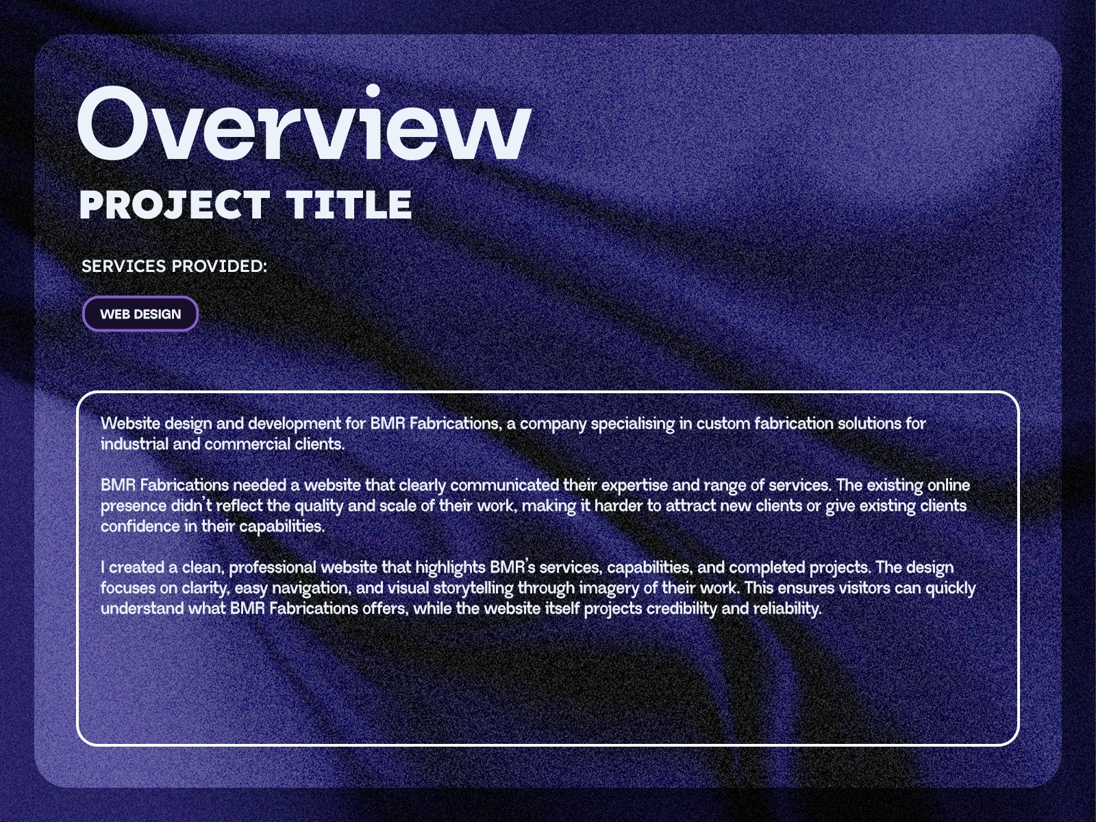 Professional, modern website for BMR Fabrications, showcasing their services and capabilities while building trust with potential clients.