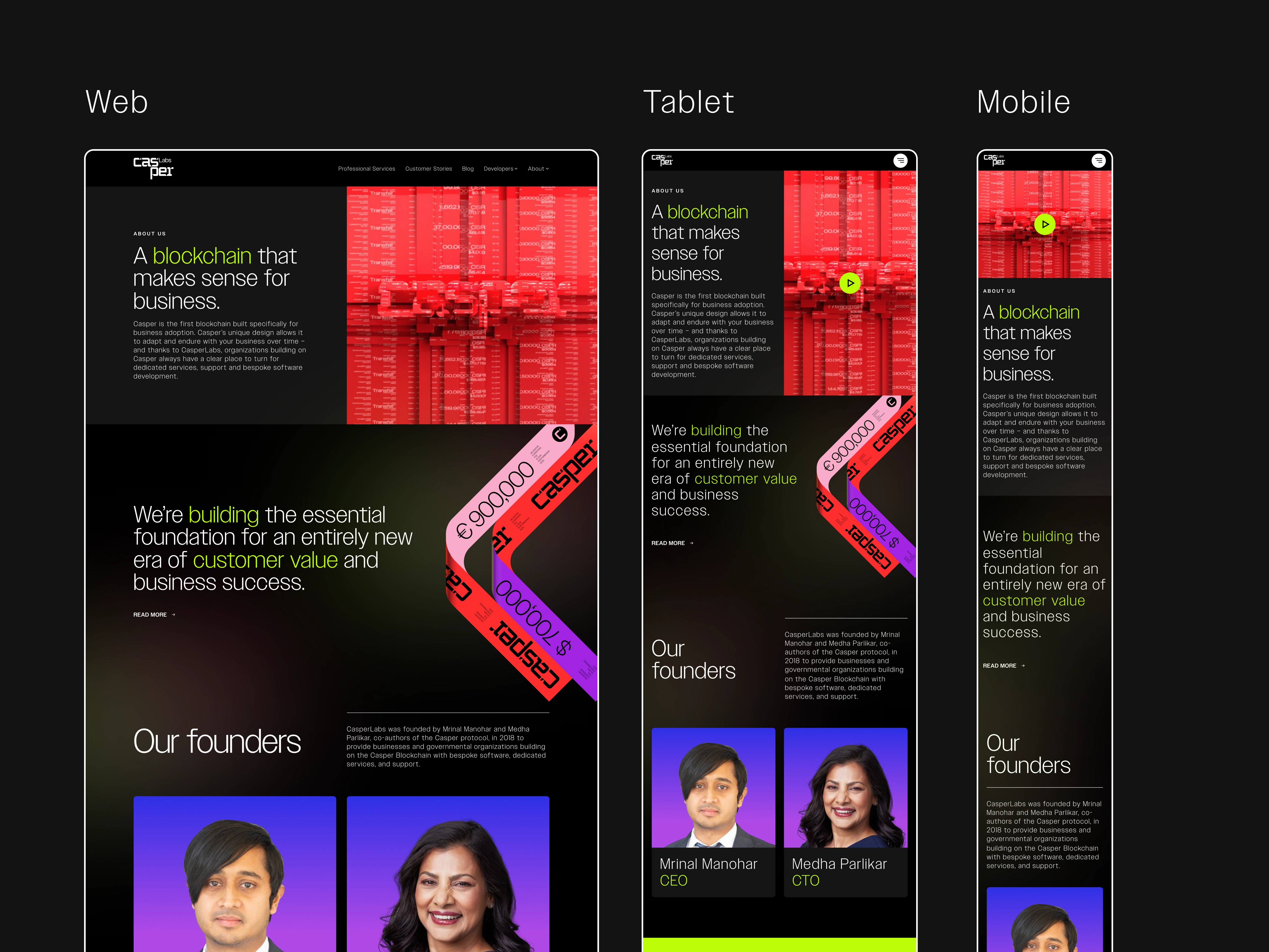 Casper Labs was established by the founders of the Casper protocol in 2018 to provide businesses and governmental organizations building on the Casper Blockchain with bespoke software, dedicated services, and support.
