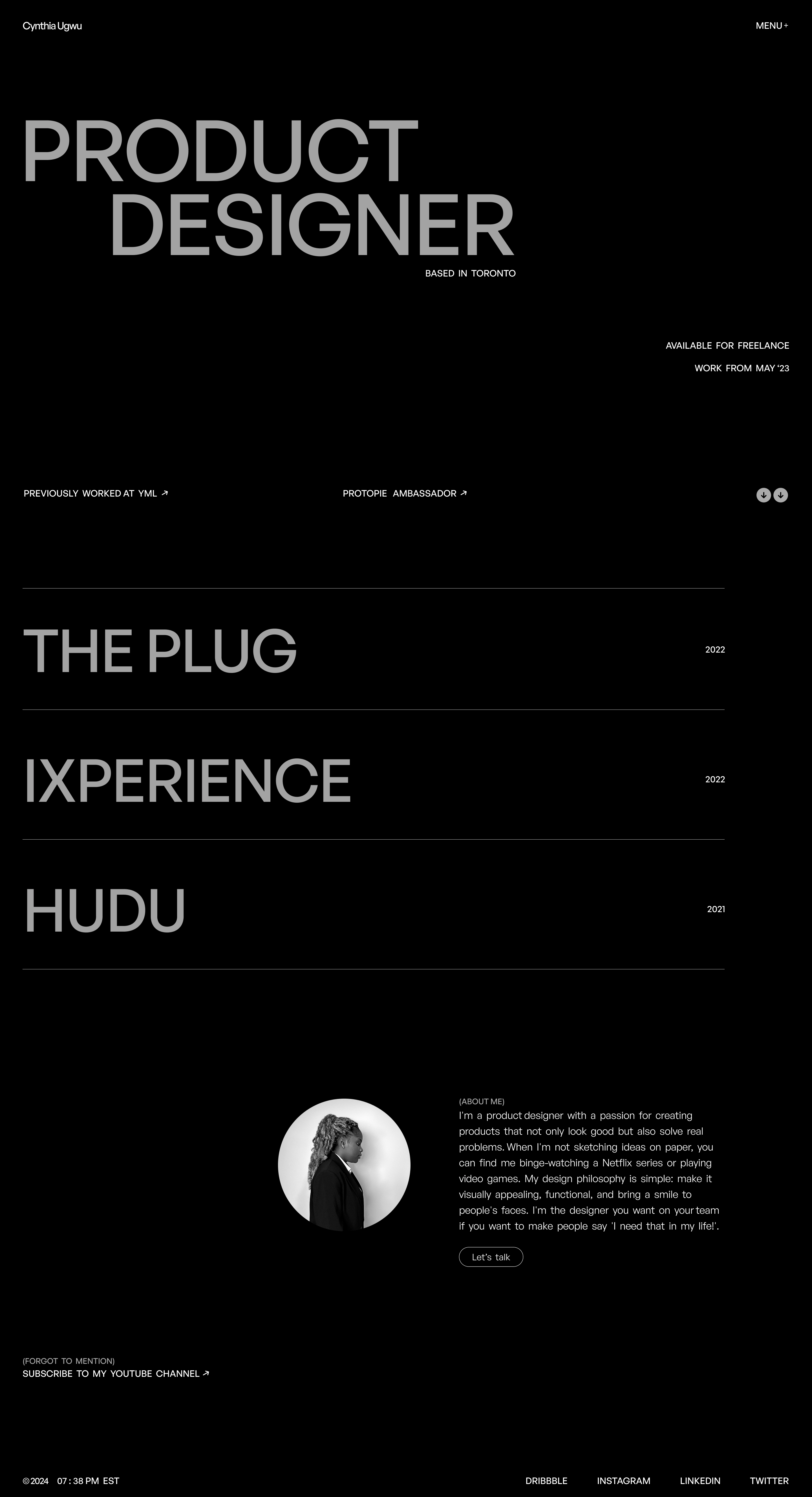 Successfully crafted an award-winning digital portfolio for a product designer, utilizing cutting-edge technologies to showcase their innovative designs.
