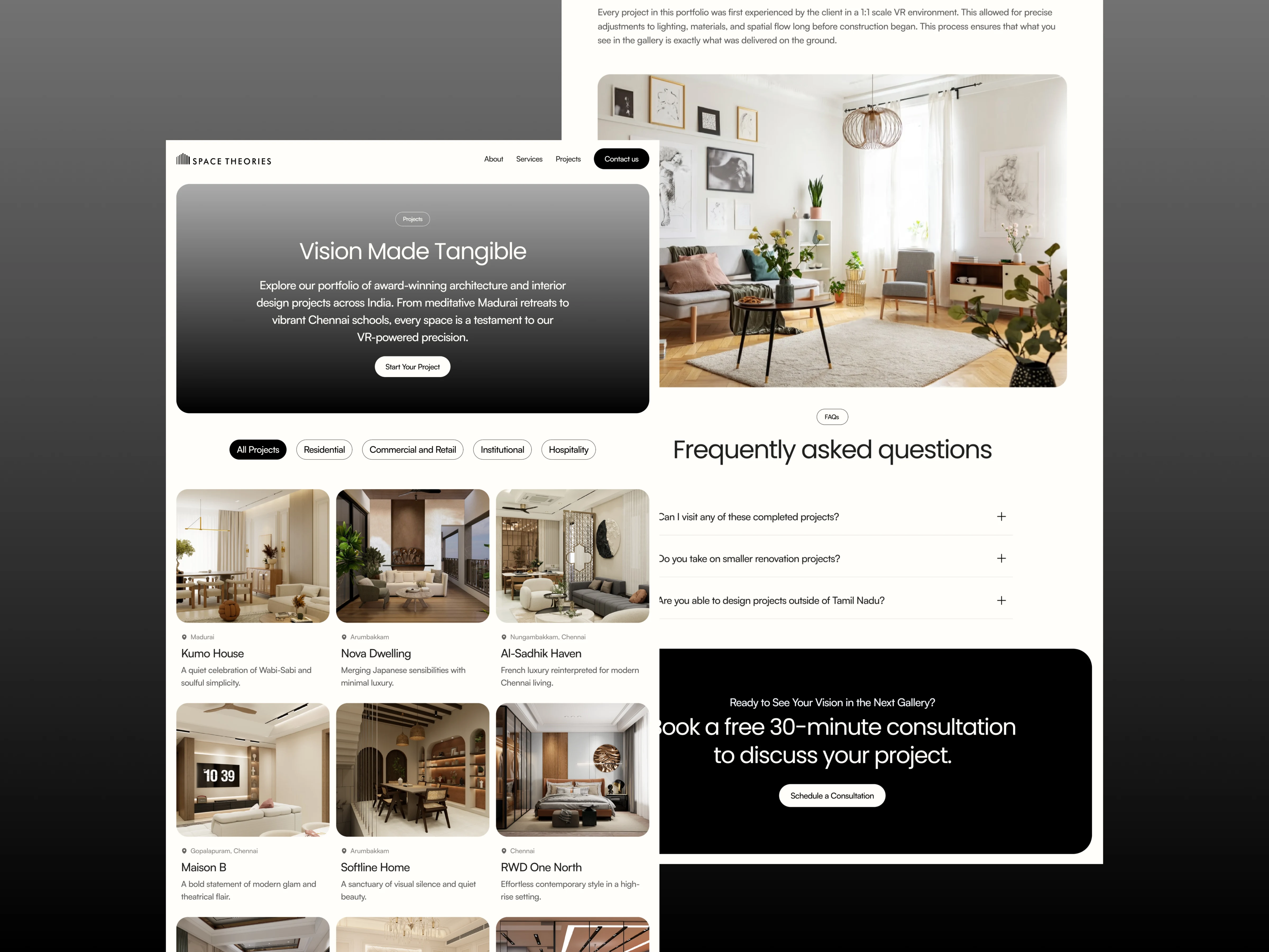 Designed and developed a premium, conversion-focused Framer site with scalable CMS and fully responsive layouts for an interior studio.