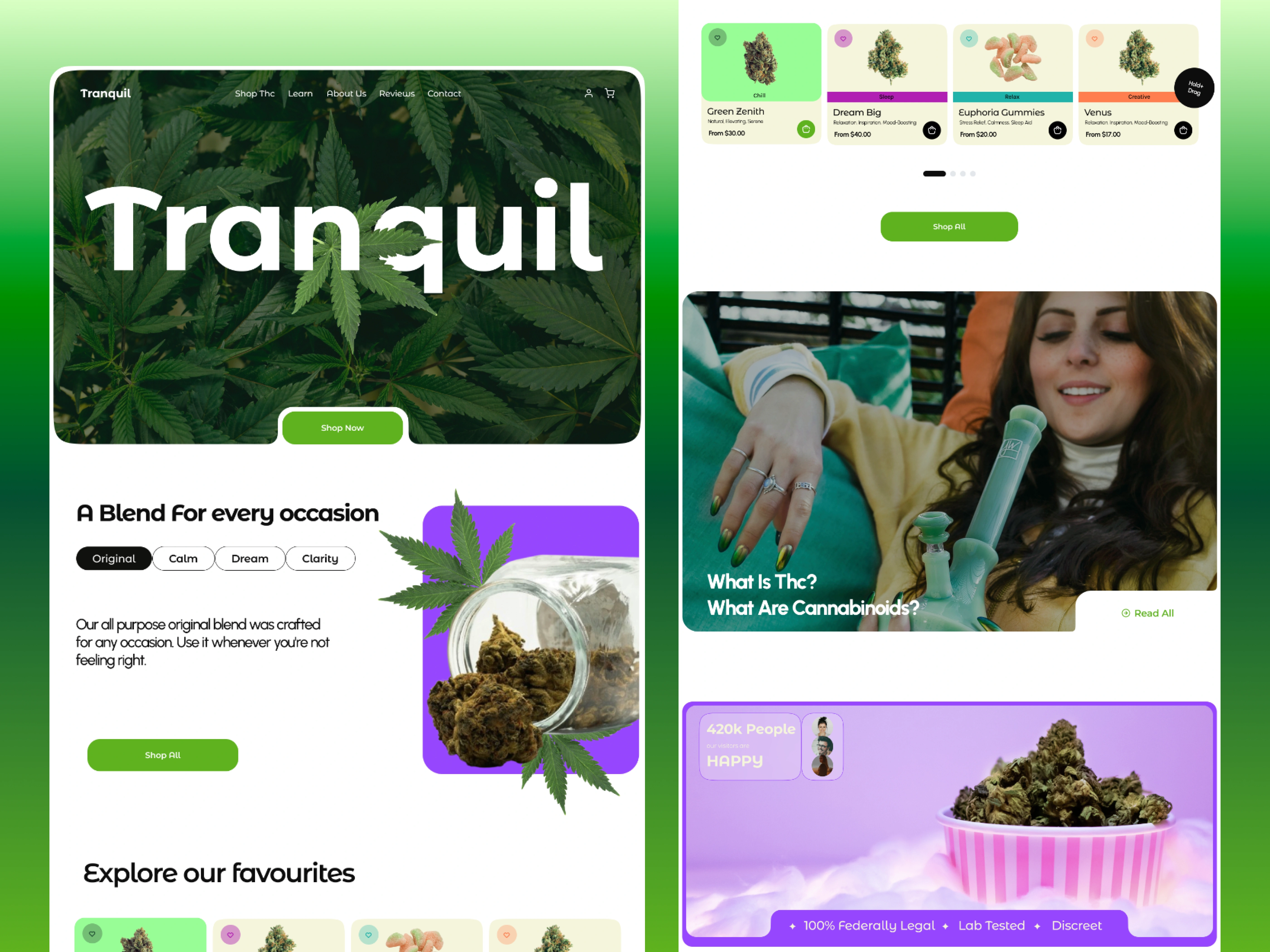 We focused on clarity and conversion through clean navigation, bold product visuals, and inviting micro-interactions. The visual language reflects balance: vibrant yet grounded, bold yet relaxing. Each section guides users naturally from discovery to purchase, while maintaining a sense of lifestyle storytelling through photography and typography.