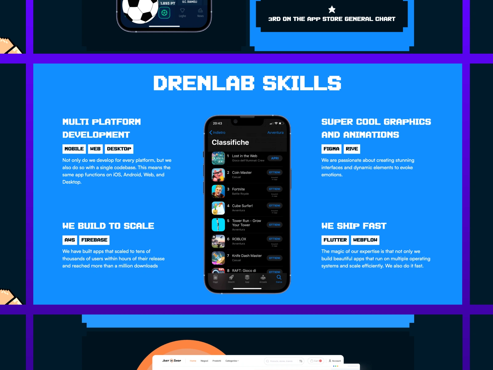 Drenlab is a creative tech agency from Trento, Italy, that builds more than just websites and apps, it crafts experiences. Their work blends sharp UI/UX design, cross-platform development, and expressive visuals powered by tools like Figma, Webflow, Rive, and GSAP.