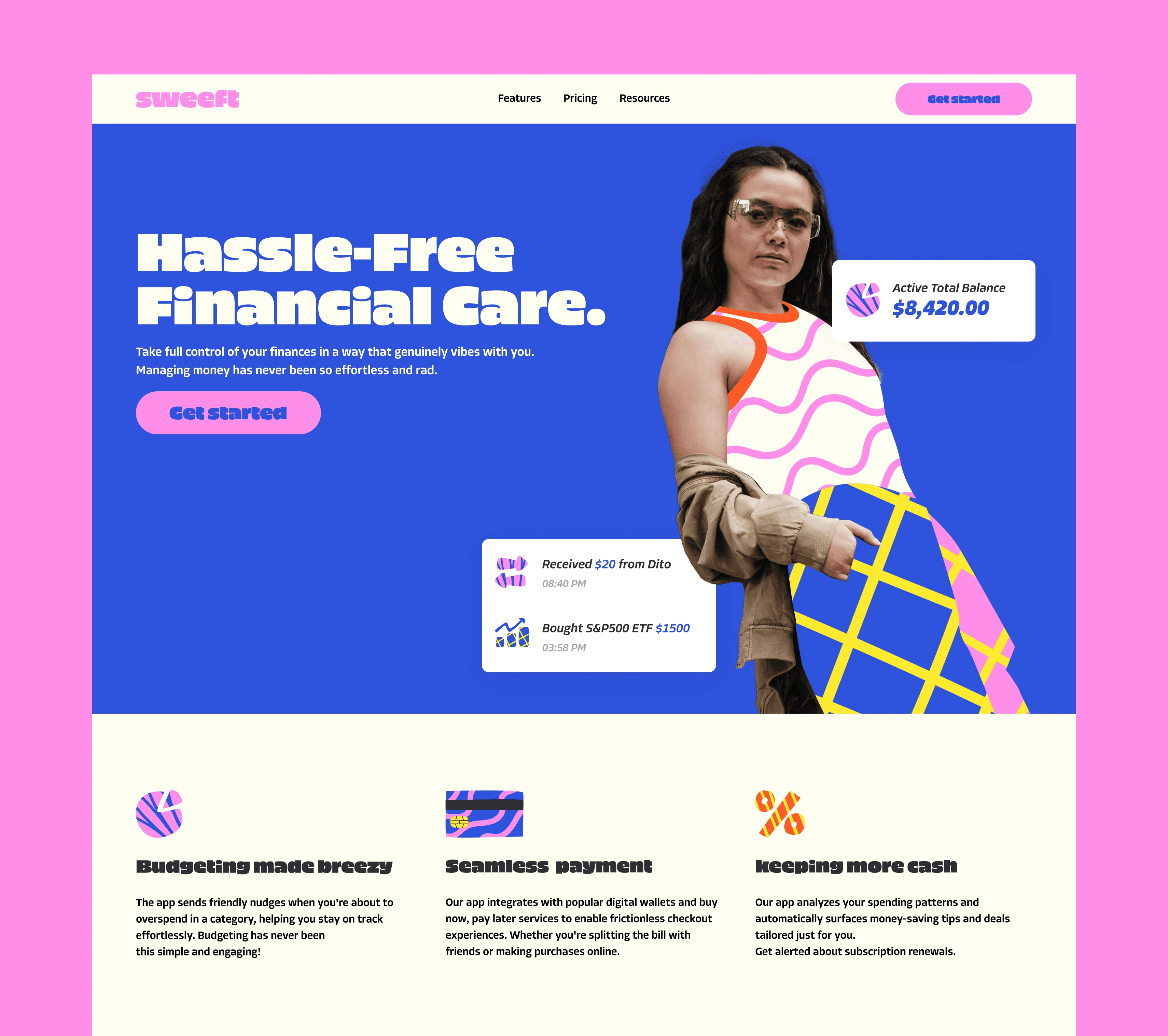 By cloaking financial services in this candy-coated visual language, Sweeft removes intimidating money jargon.