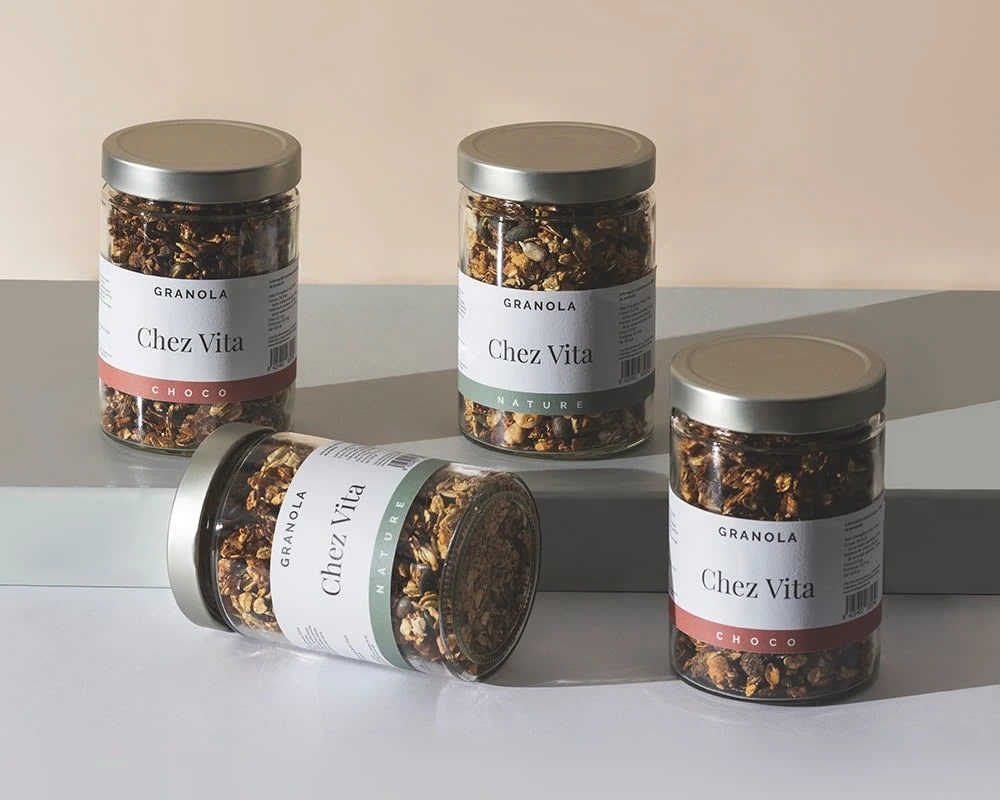 Chez Vita is a brand from Zaragoza dedicated to the sale of granola that contacted me for the creation and design of their identity, from their logo to the pack