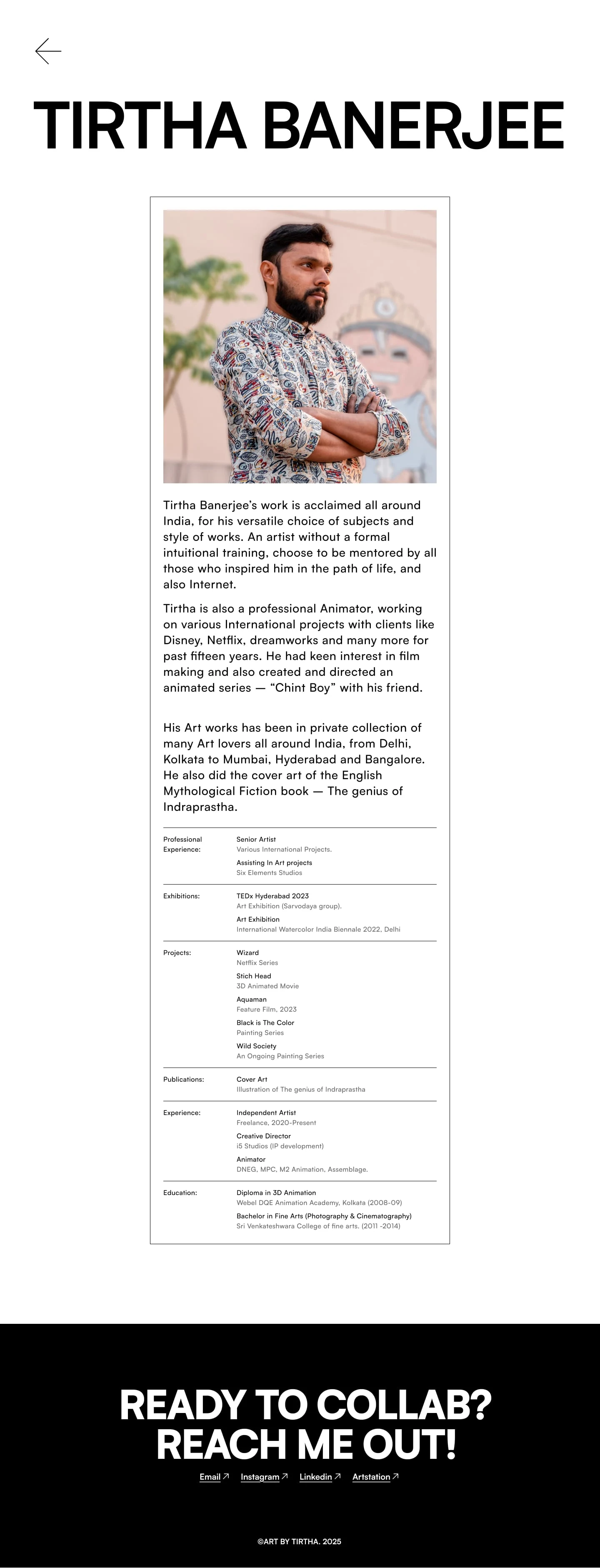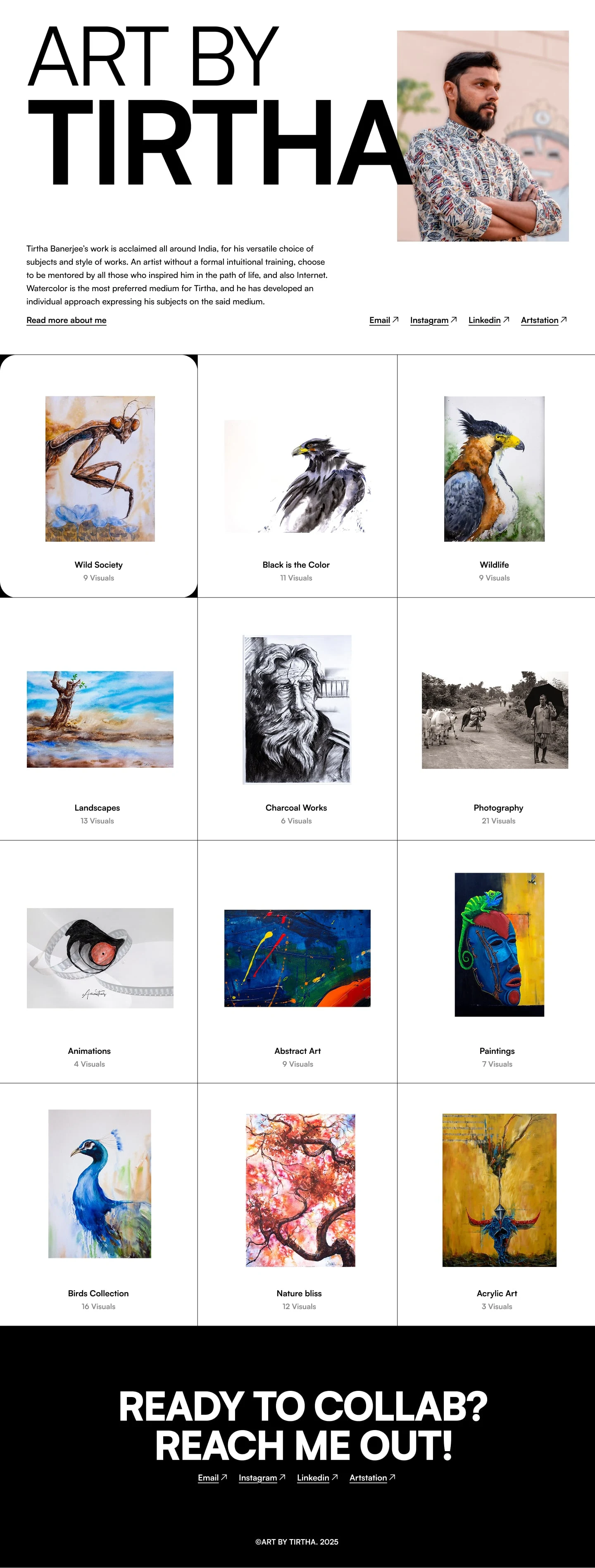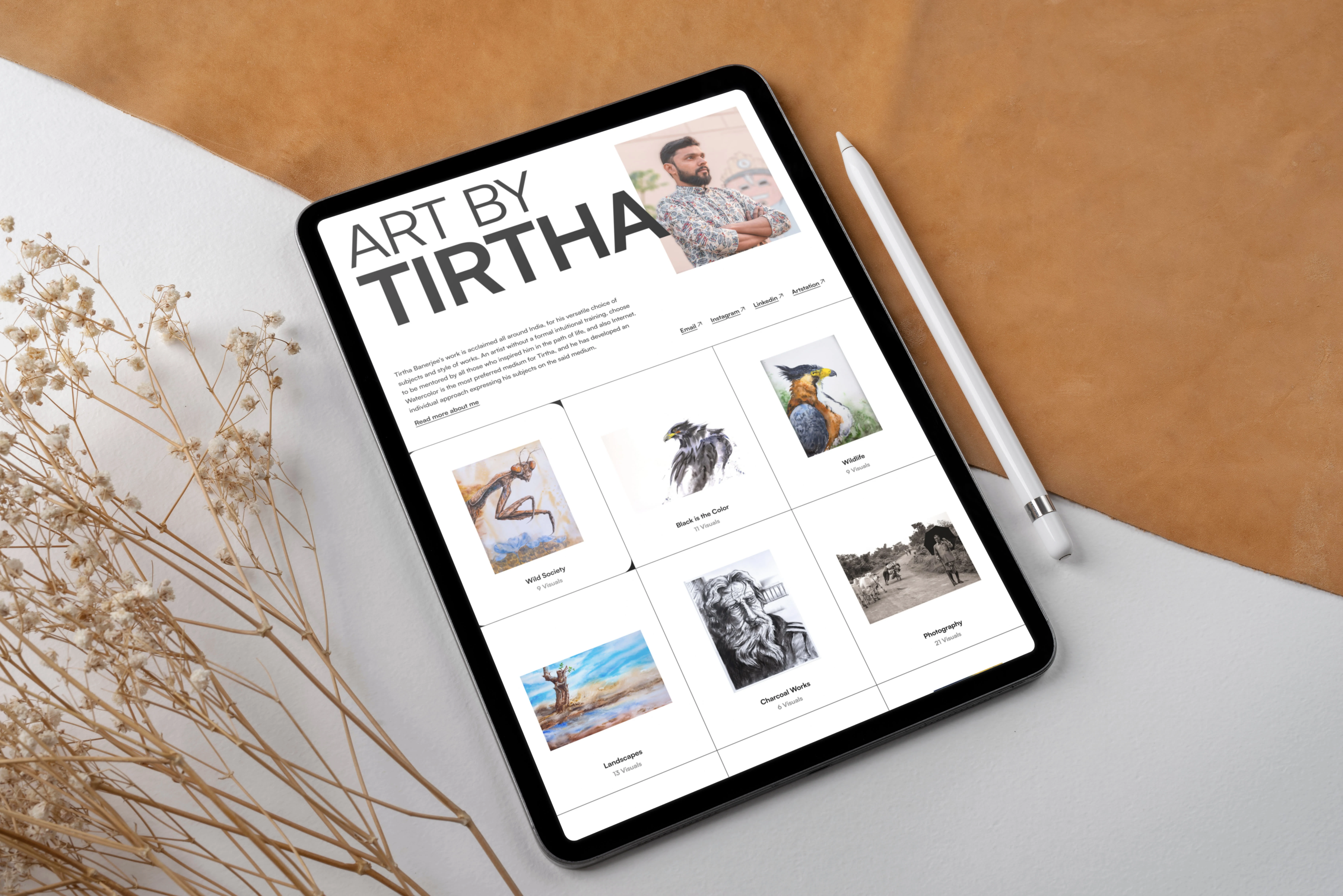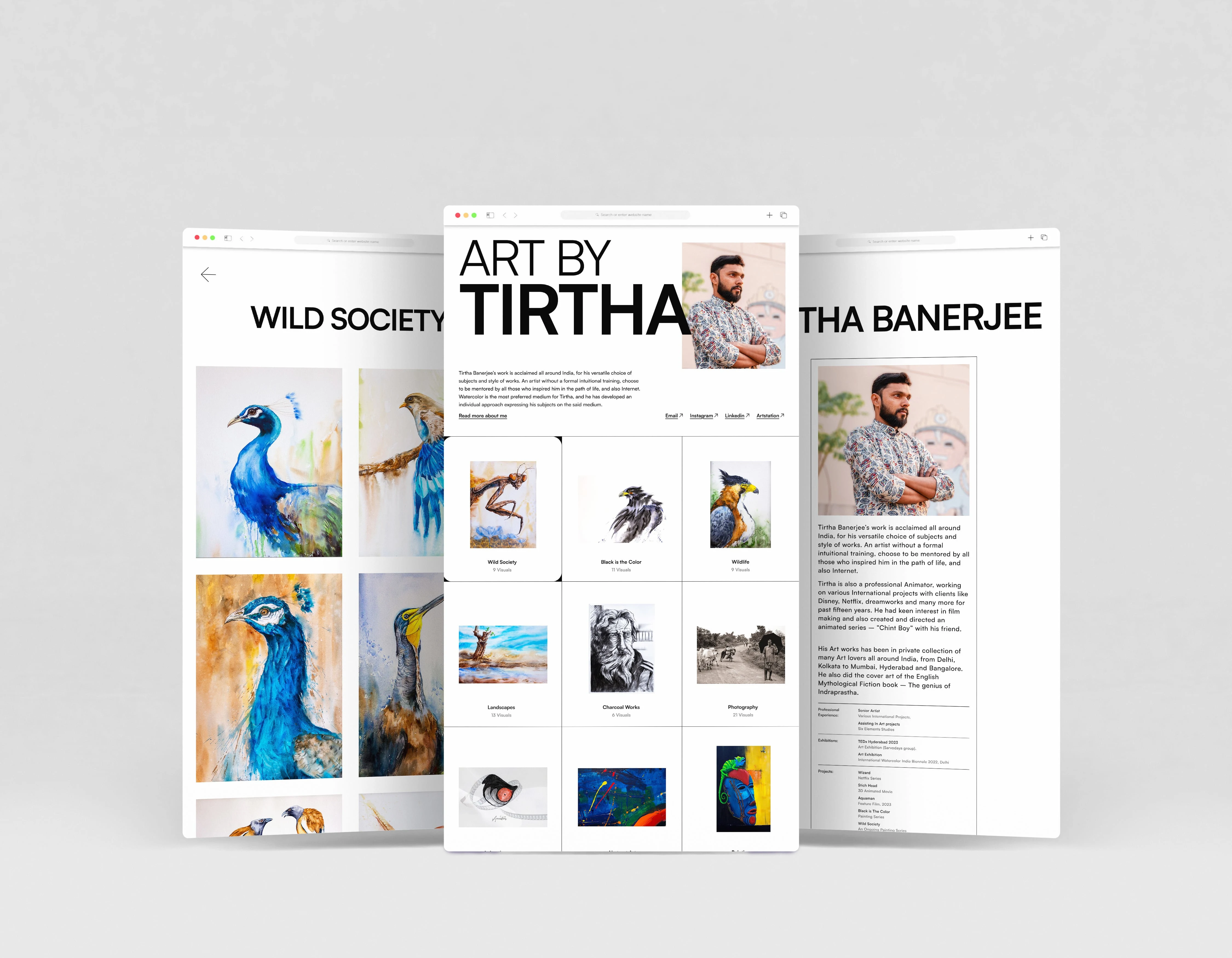 Designed a clean, minimal Figma landing page for artist Tirtha Banerjee, showcasing his paintings with elegance, focus, and a gallery like experience.