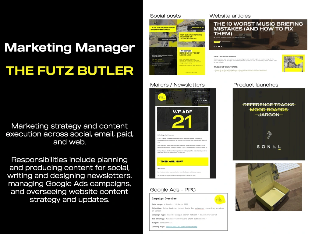 Lead content for social, email, and web. Manage newsletters, create articles, and deliver consistent multi-channel output that supports new business.