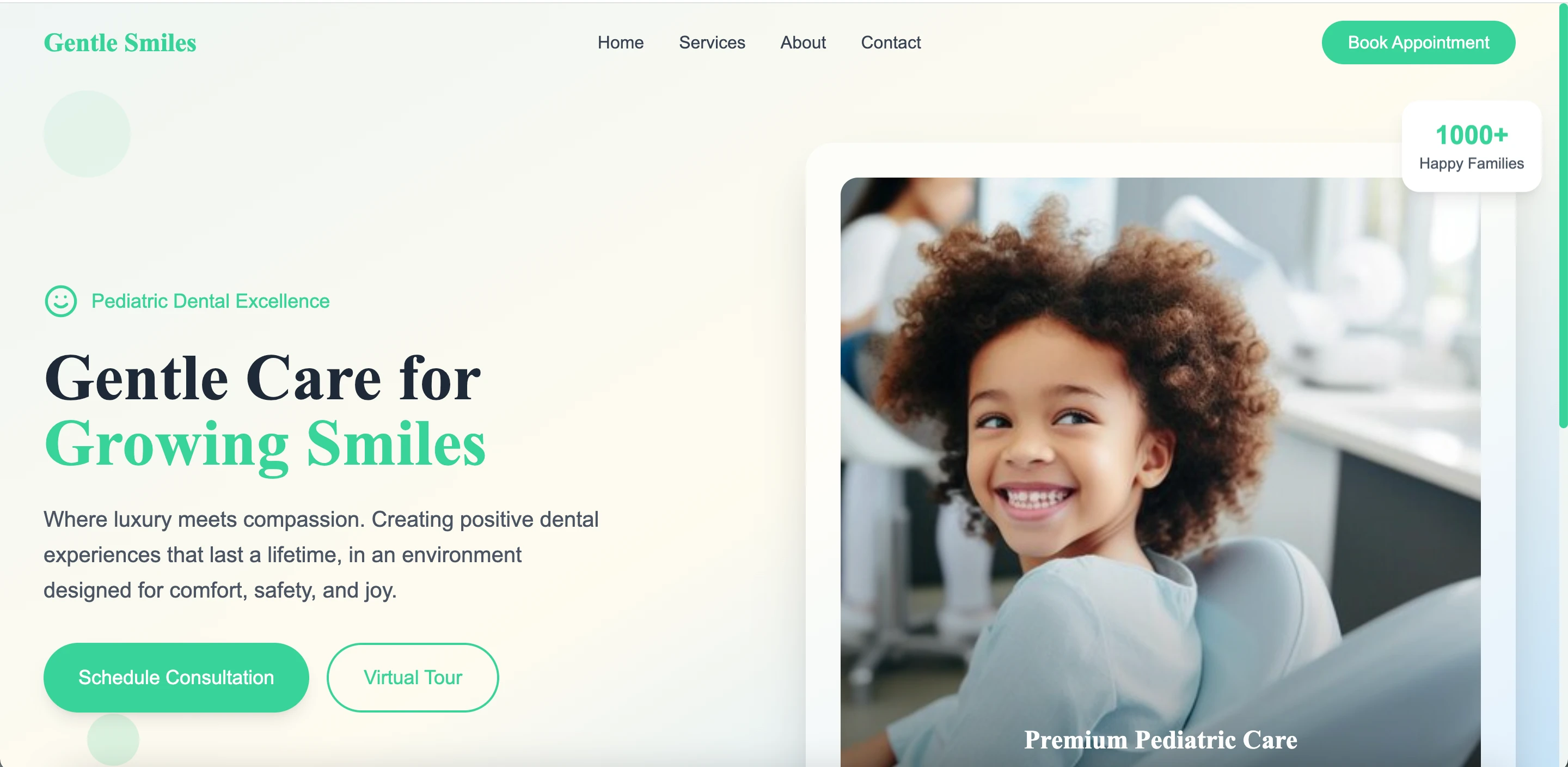 Responsive website for a pediatric dental clinic. The site highlights services, booking functionality, and a warm visual identity to attract families.