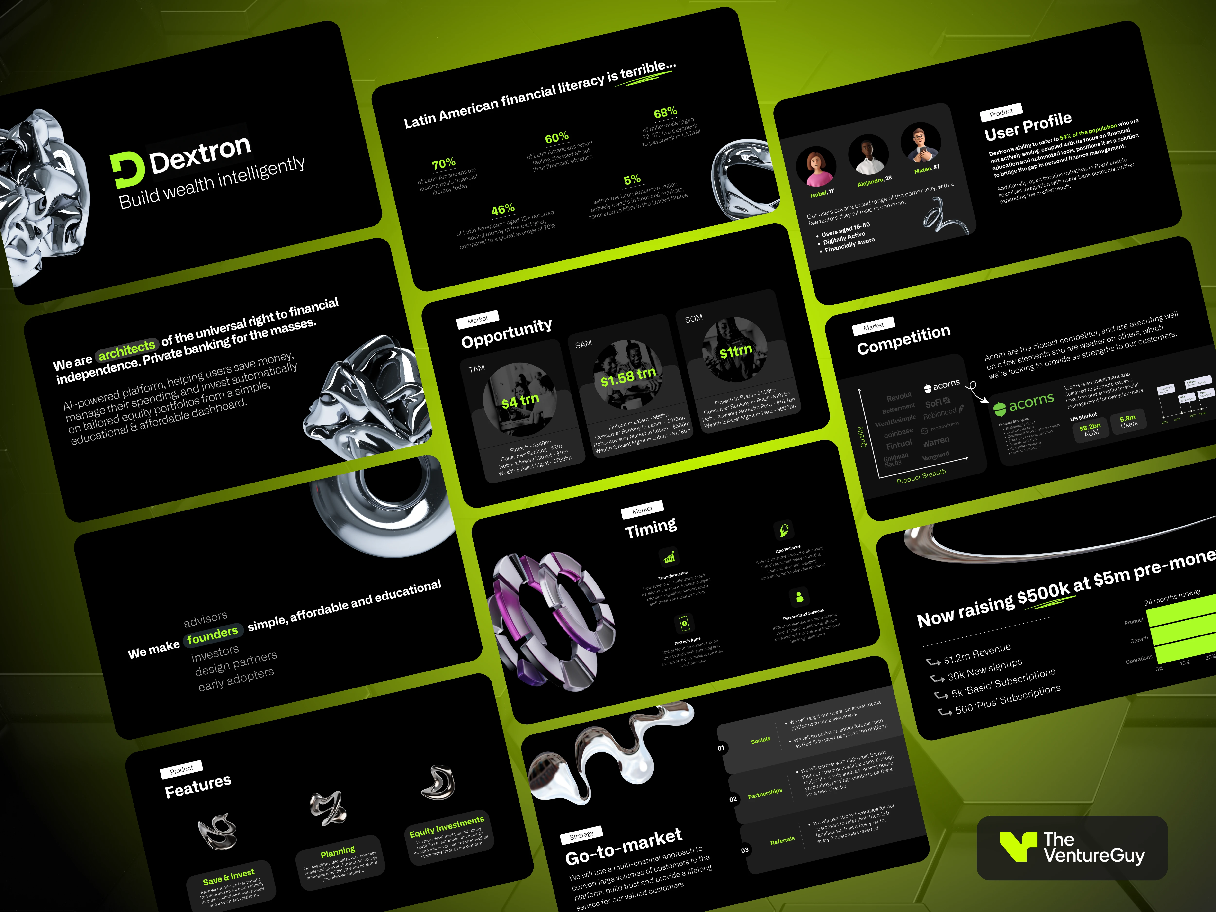 Dextron is a WealthTech platform that had an oversimplified deck, lacked detail and was too generic to garner investor interest. The founder feared getting in to detail that investors would struggle to understand & comprehend.