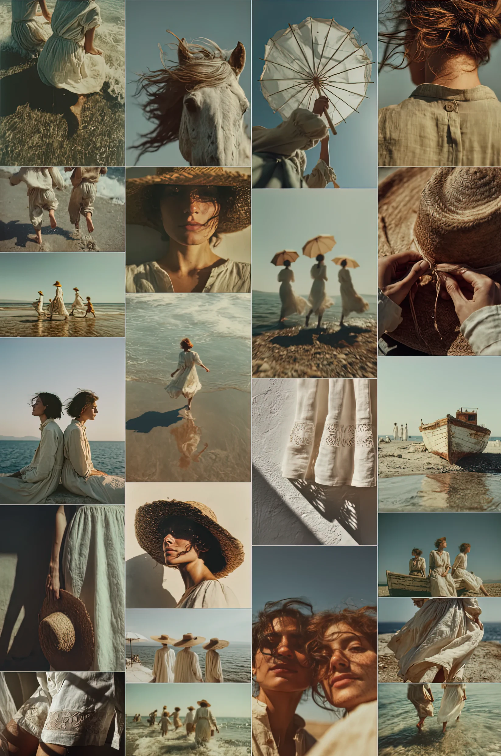 Inspired by Sorolla’s luminous beach scenes—linen soaked in seawater, women under parasols, timeless gestures by the shore—but reframed through the visual language of contemporary editorial photography.